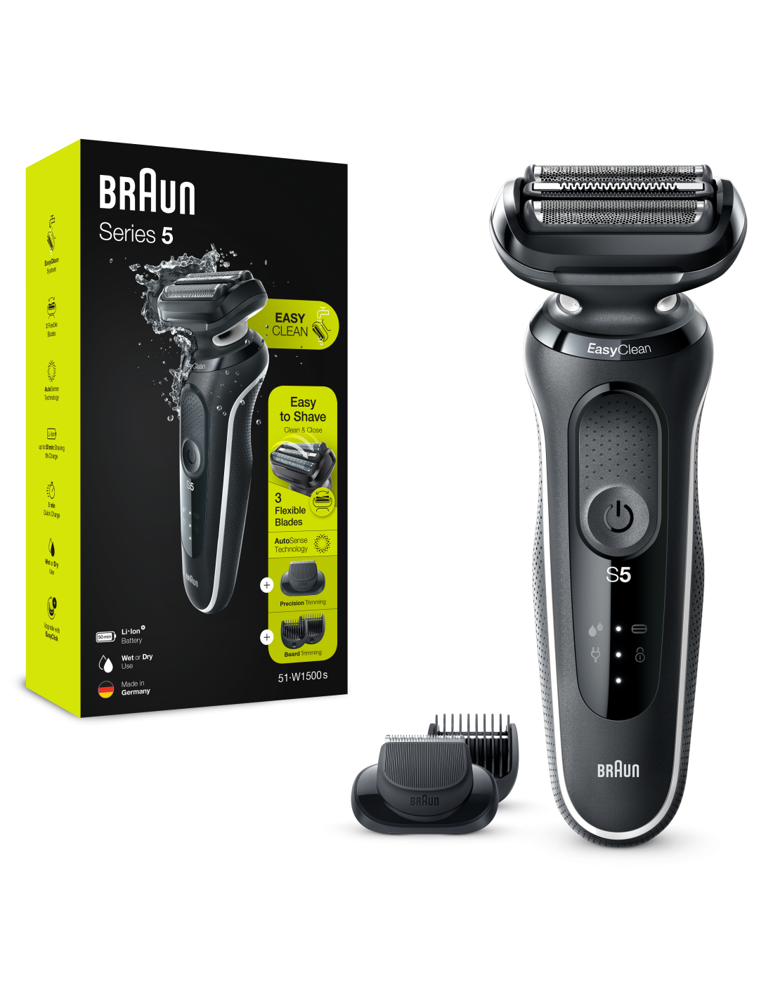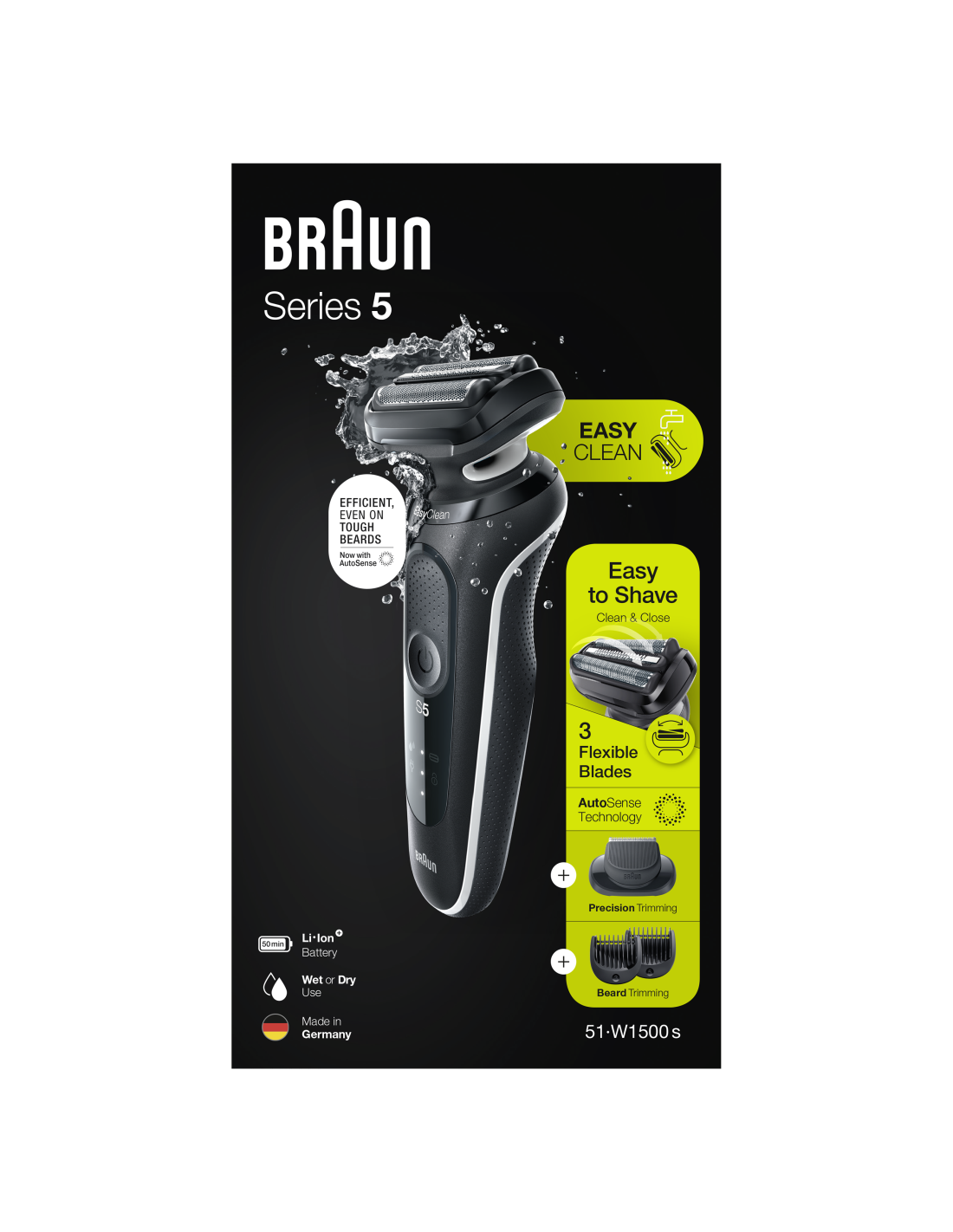 Braun Series 5 51-W1500s elektripardel ja habeme piiramistera, märg- ja kuivkasutus, laetav, juhtmeta võrguga pardel, valge