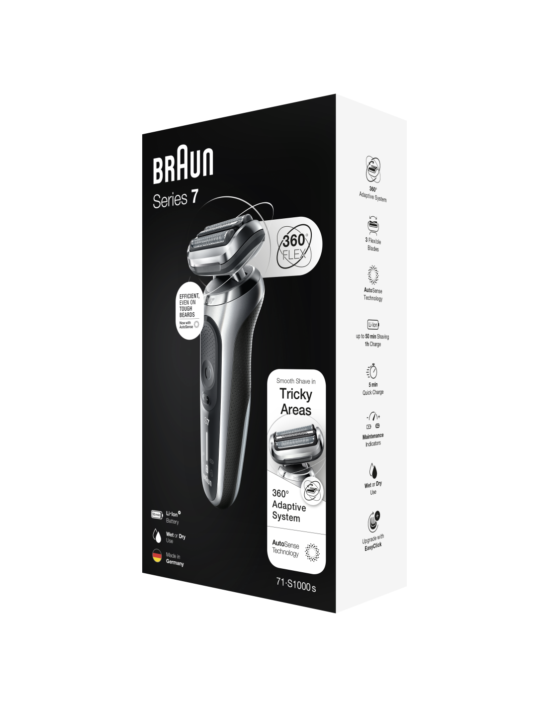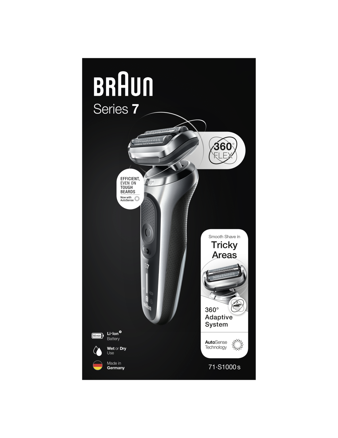 Braun Series 7 71-S1000s elektripardel, märg- ja kuivkasutus, laetav, juhtmeta võrguga pardel, hõbedane