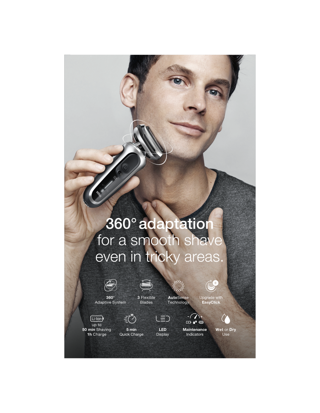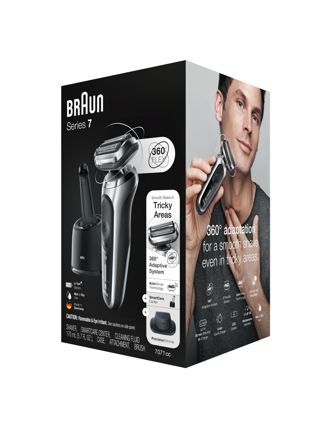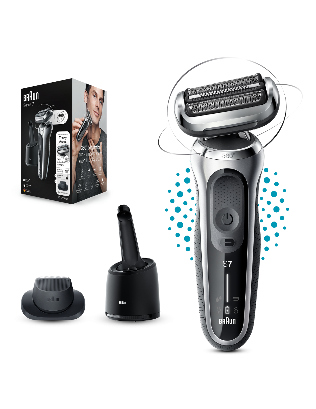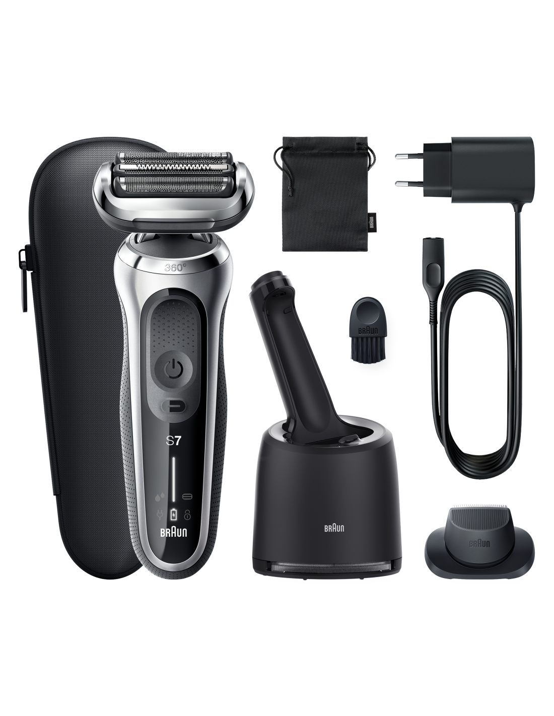 Braun Series 7 71-S7200cc elektripardel ja SmartCare-hoolduskeskus, täpne piiramistarvik, märg- ja kuivkasutus, laetav, juhtmeta võrguga pardel, hõbedane.