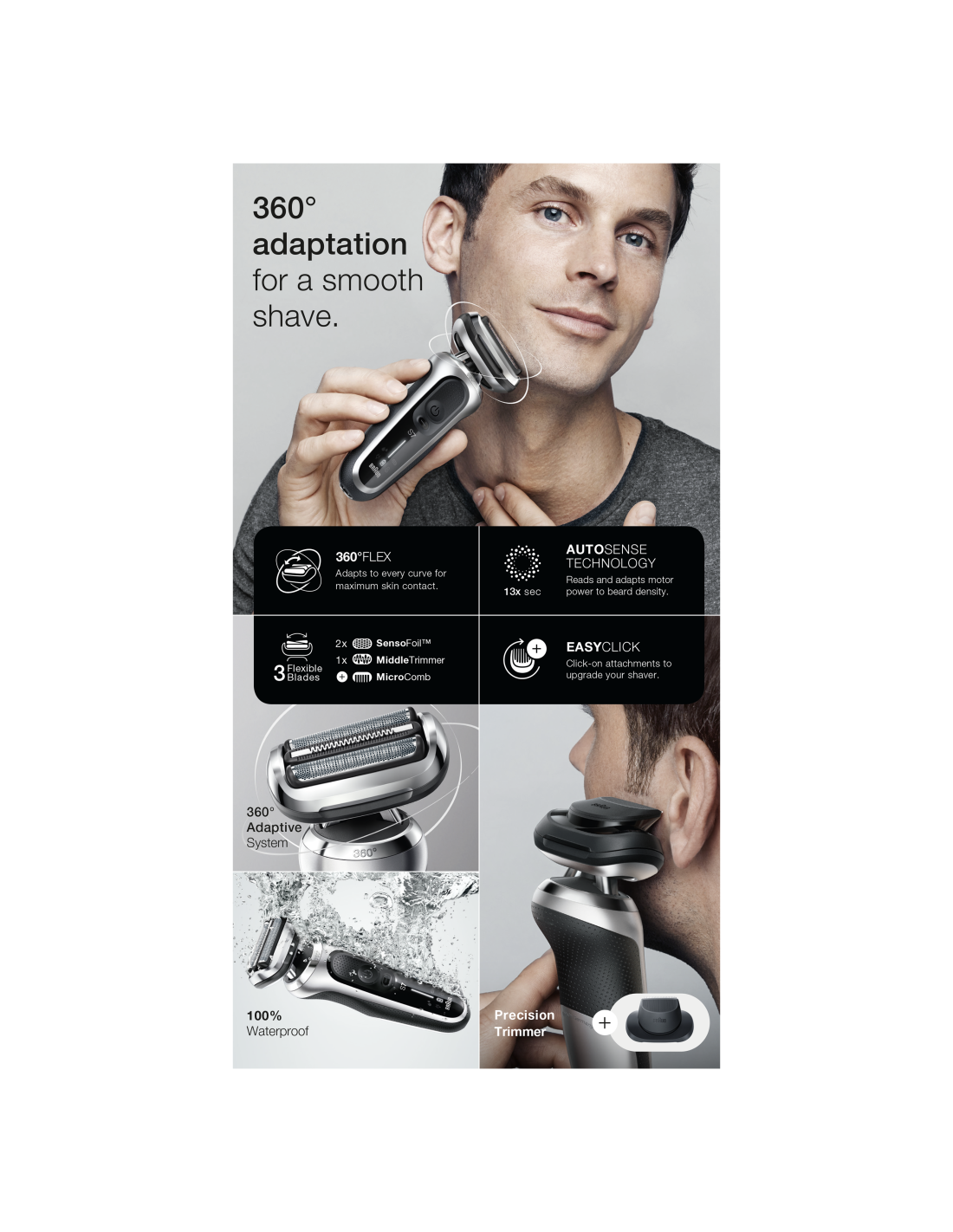 - Tõhus isegi karmidel habemetel: AutoSense-tehnoloogia tuvastab habeme tiheduse ja kohandub vastavalt sellele, haarates ja lõigates iga liigutusega rohkem karvu
