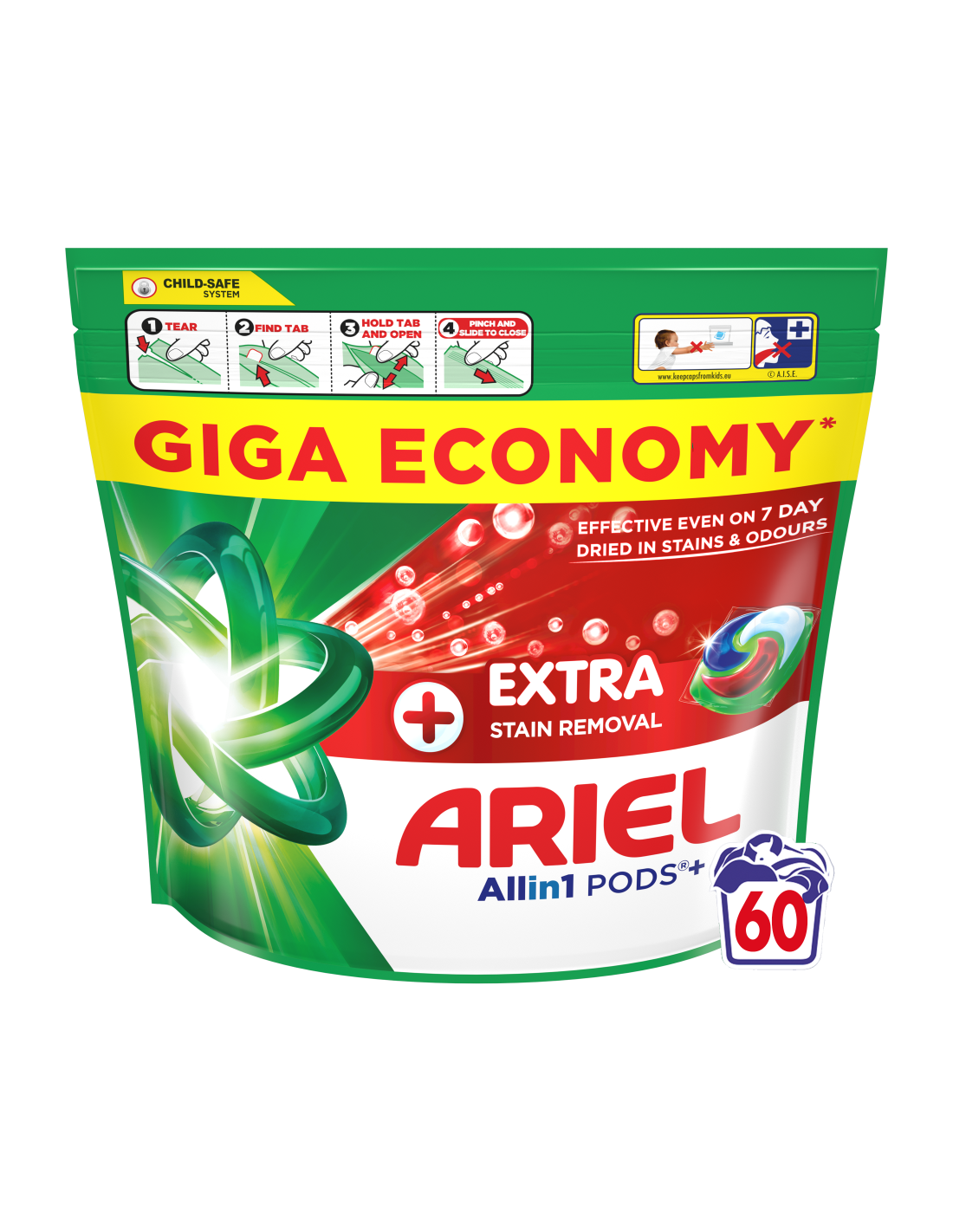Whirlpooli, Electroluxi, Candy ja Beko poolt soovitatud kaubamärk Ariel esitleb Arieli Allin1 PODS+ pesukapslites pesuvahendit + Täiendav Plekke Eemaldav Toime, Arieli kõigi aegade parimaid Allin1 PODS+ pesukapsleid! Tänu lisatud punasele kambrile toimivad need külmas vees isegi 7 päeva sissekuivanud plekkide korral. Need on loodud toimima suurepäraselt ka külmemates tsüklites, lahustuvad kiiresti isegi külmas vees ja tagavad laitmatud tulemused. Parimate tulemuste saavutamiseks pane kapslid esmalt tühja trumli tagaossa ja aseta riided peale. HOIATUS: toode võib olla kahjulik ja põhjustada raske vigastuse. Ariel Allin1 PODS pesukapslites pesuvahendit tuleb alati hoida lastele kättesaamatus kohas. Lisateavet leiad aadressilt keepcapsfromkids.eu.