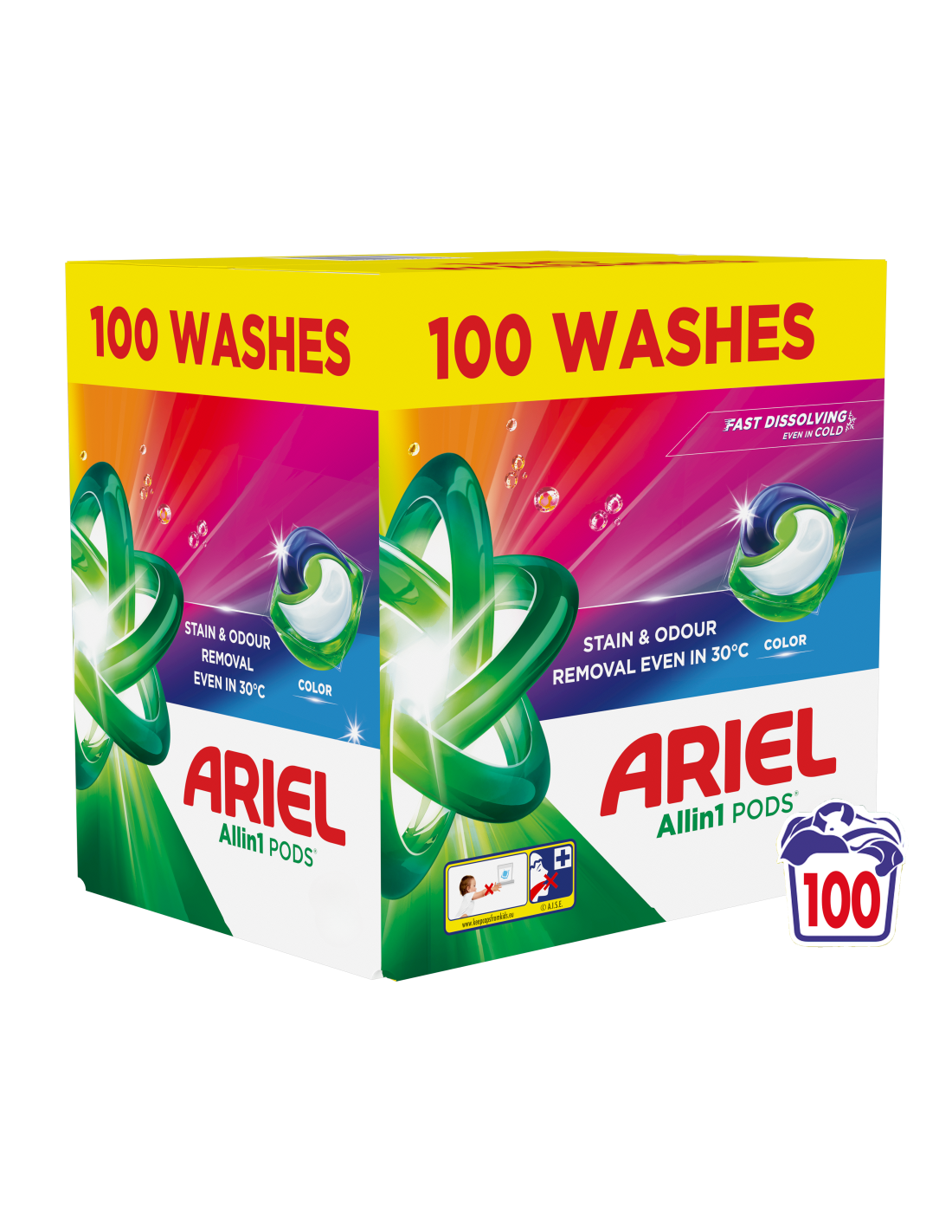 Whirlpooli, Electroluxi, Candy ja Beko soovitatud kaubamärk Ariel esitleb Arieli Allin1 PODS pesutablettides pesupesemisvahendit Color, mis eemaldab raskestieemaldatavad plekid ja ebameeldivad lõhnad isegi 30°C juures. Need on loodud toimima suurepäraselt ka külmemates tsüklites, lahustuvad kiiresti isegi külmas vees ja tagavad laitmatud tulemused. HOIATUS: toode võib olla kahjulik ja põhjustada raske vigastuse. Ariel Allin1 PODS pesukapslites pesuvahendit tuleb alati hoida lastele kättesaamatus kohas. Lisateavet leiad aadressilt keepcapsfromkids.eu.