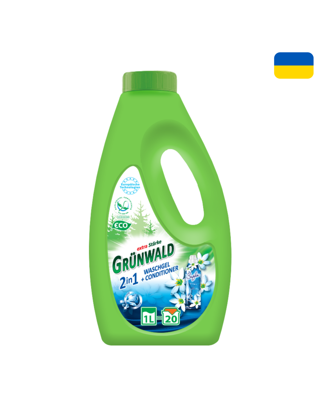 Grünwald 2in1 tagab ideaalselt puhta pesu koos Sapfir pesuloputusvahendi kauakestva värskusega.