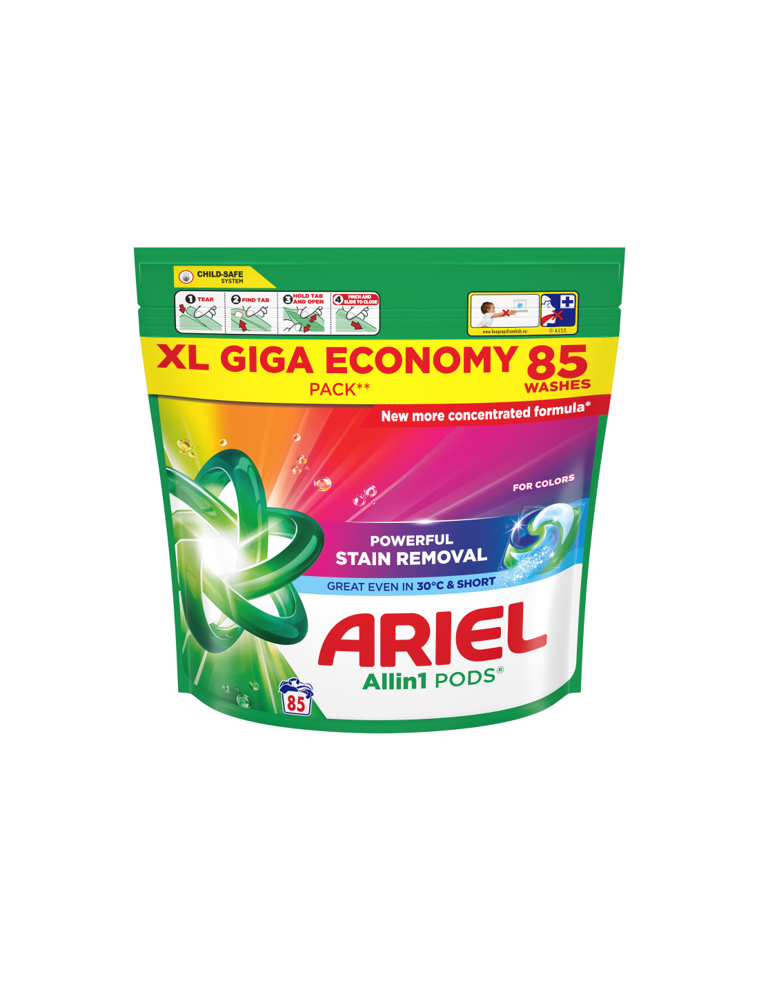 Whirlpooli, Electroluxi, Candy ja Beko soovitatud kaubamärk Ariel esitleb Arieli Allin1 PODS pesutablettides pesupesemisvahendit Color, mis eemaldab raskestieemaldatavad plekid ja ebameeldivad lõhnad isegi 30°C juures. Need on loodud toimima suurepäraselt ka külmemates tsüklites, lahustuvad kiiresti isegi külmas vees ja tagavad laitmatud tulemused. HOIATUS: toode võib olla kahjulik ja põhjustada raske vigastuse. Ariel Allin1 PODS pesukapslites pesuvahendit tuleb alati hoida lastele kättesaamatus kohas. Lisateavet leiad aadressilt keepcapsfromkids.eu.