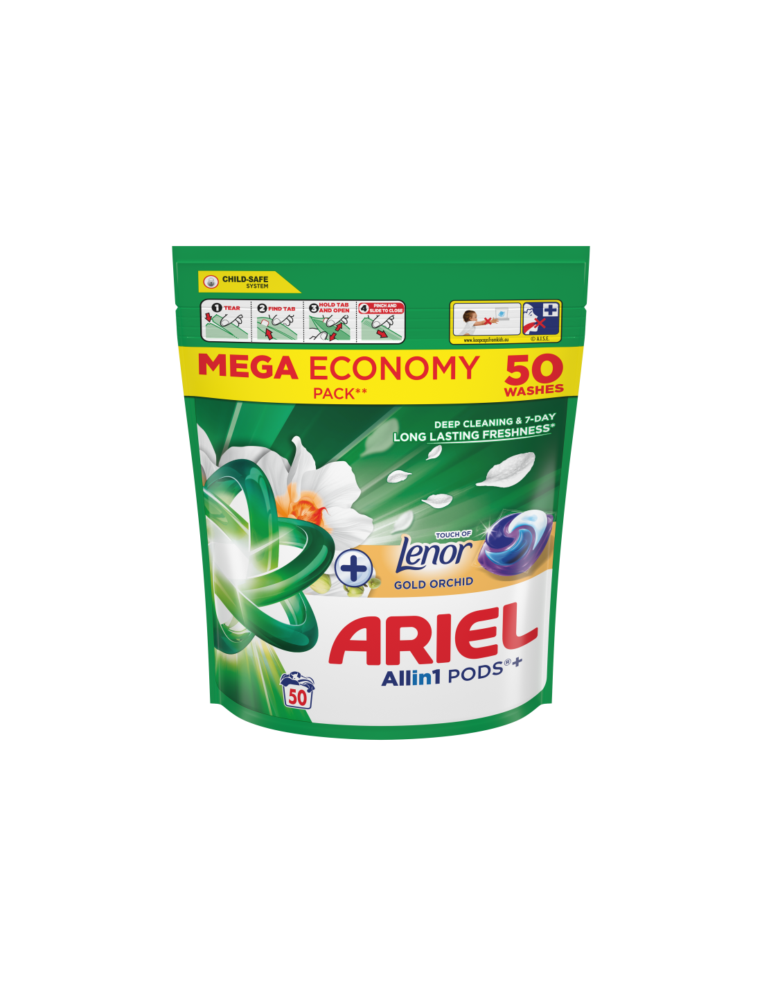 KAST 3 tk! Ariel All-in-1 PODS Touch Of Lenor Gold Orchid pesukapslid, 50 pesukorda