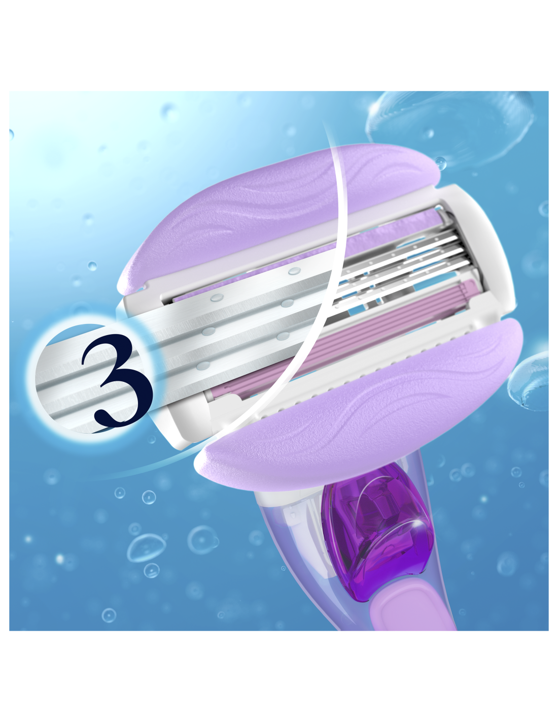 Hellitage oma nahka Venus ComfortGlide Breeze’i naiste raseerija teradega. 3 kontuure järgivat tera ja lisatud seebiribad, millest eraldub luksuslikku freesialõhnalist kehavõiet, tagavad uskumatu libisevuse, mugavuse ja unustamatu raseerimiskogemuse.