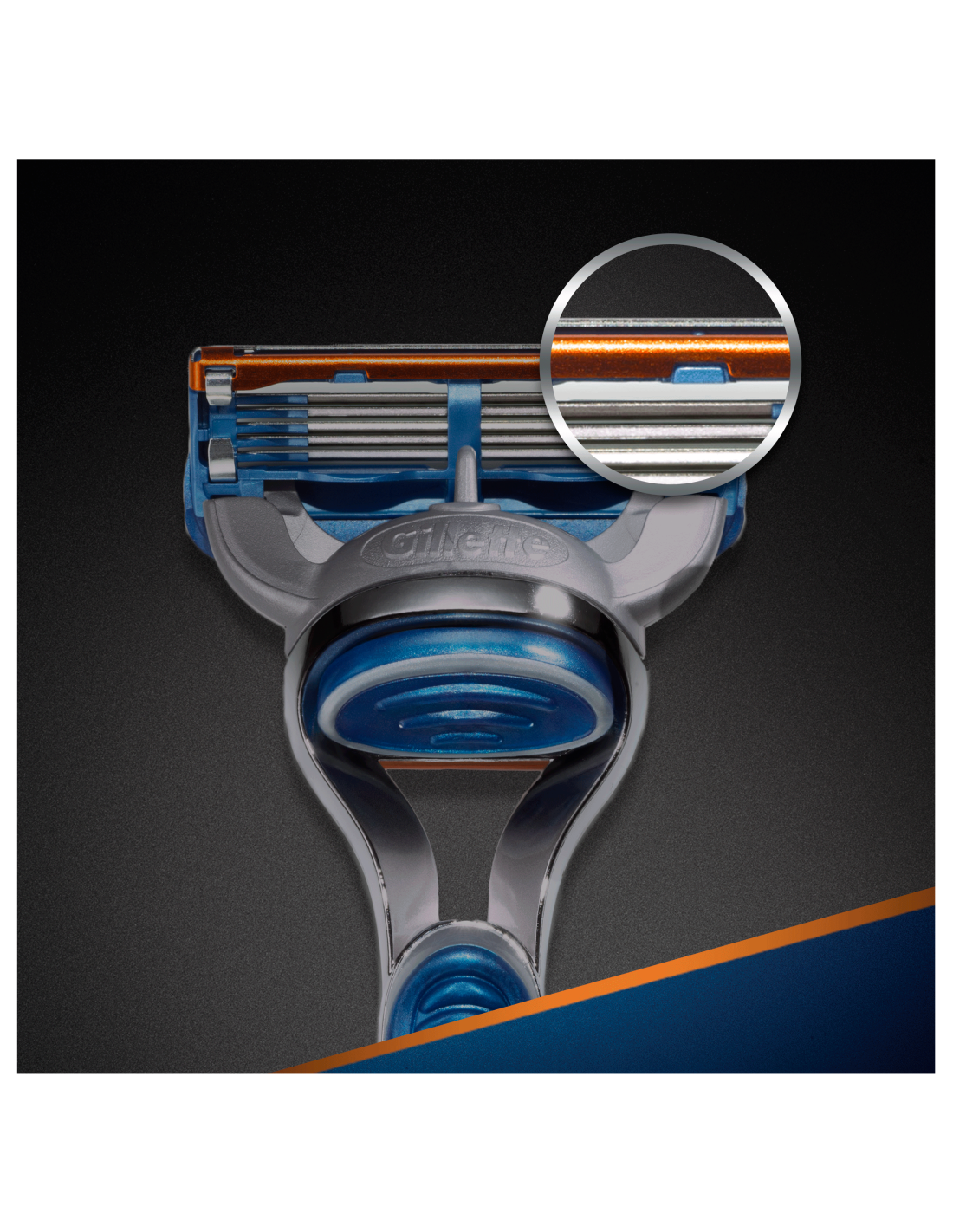 • Nahalähedasem ja püsivam raseerimistulemus*: Gillette’i Fusion5 meeste raseerijal on 5 hõõrdumisvastast tera (* vs. Mach3).