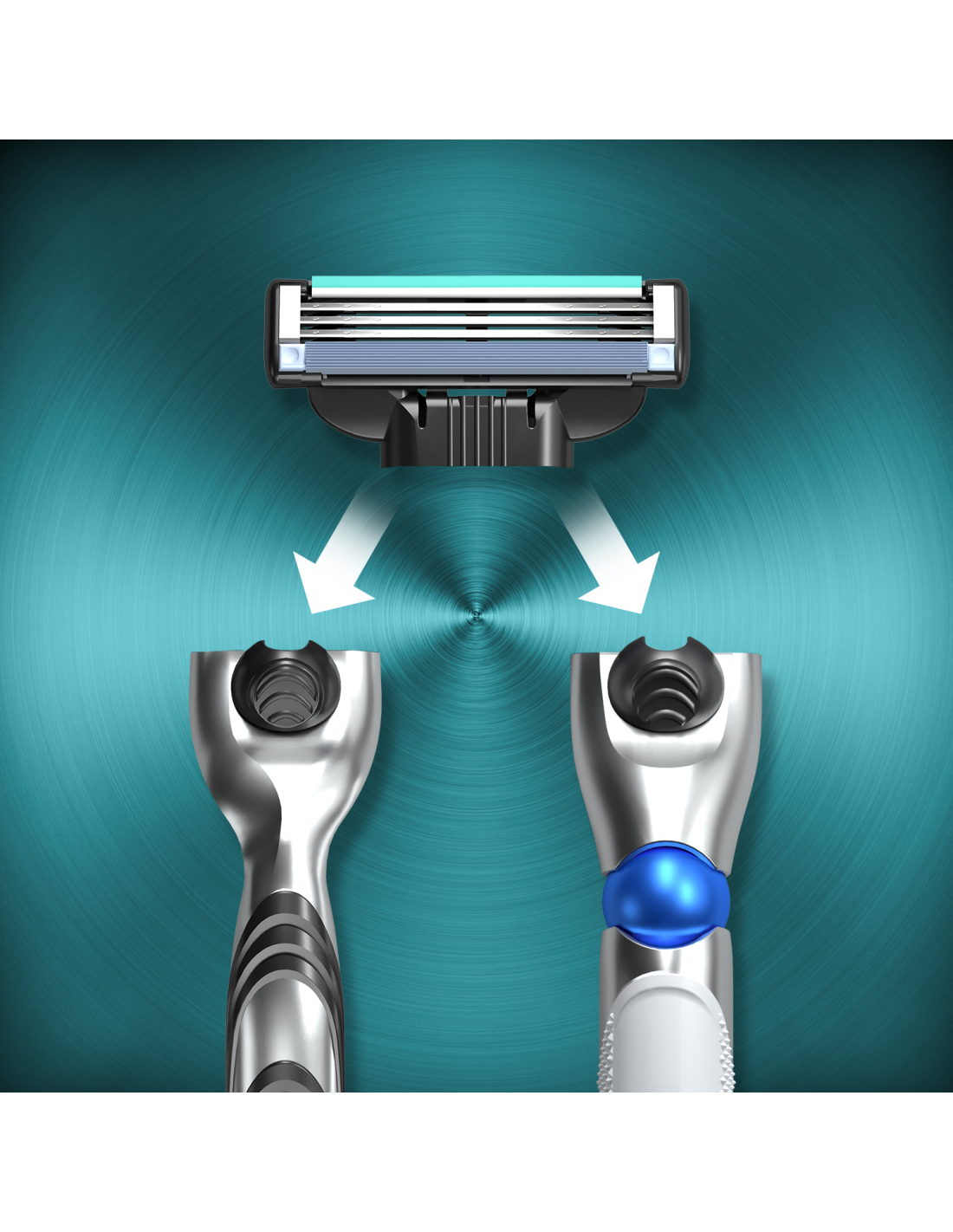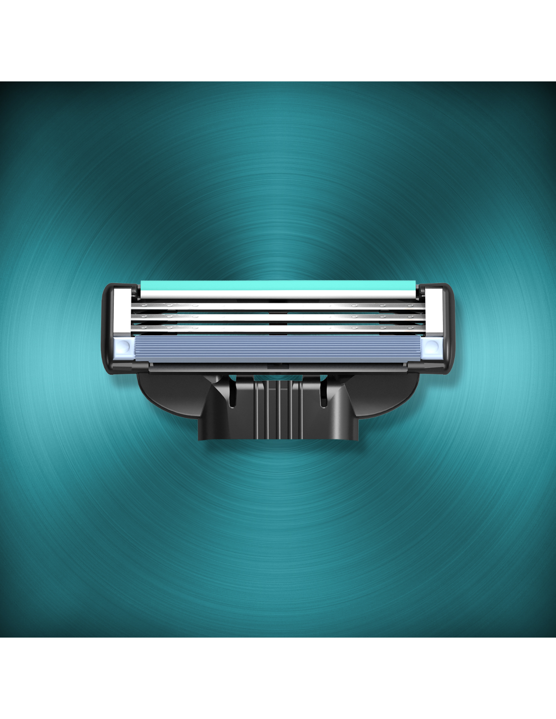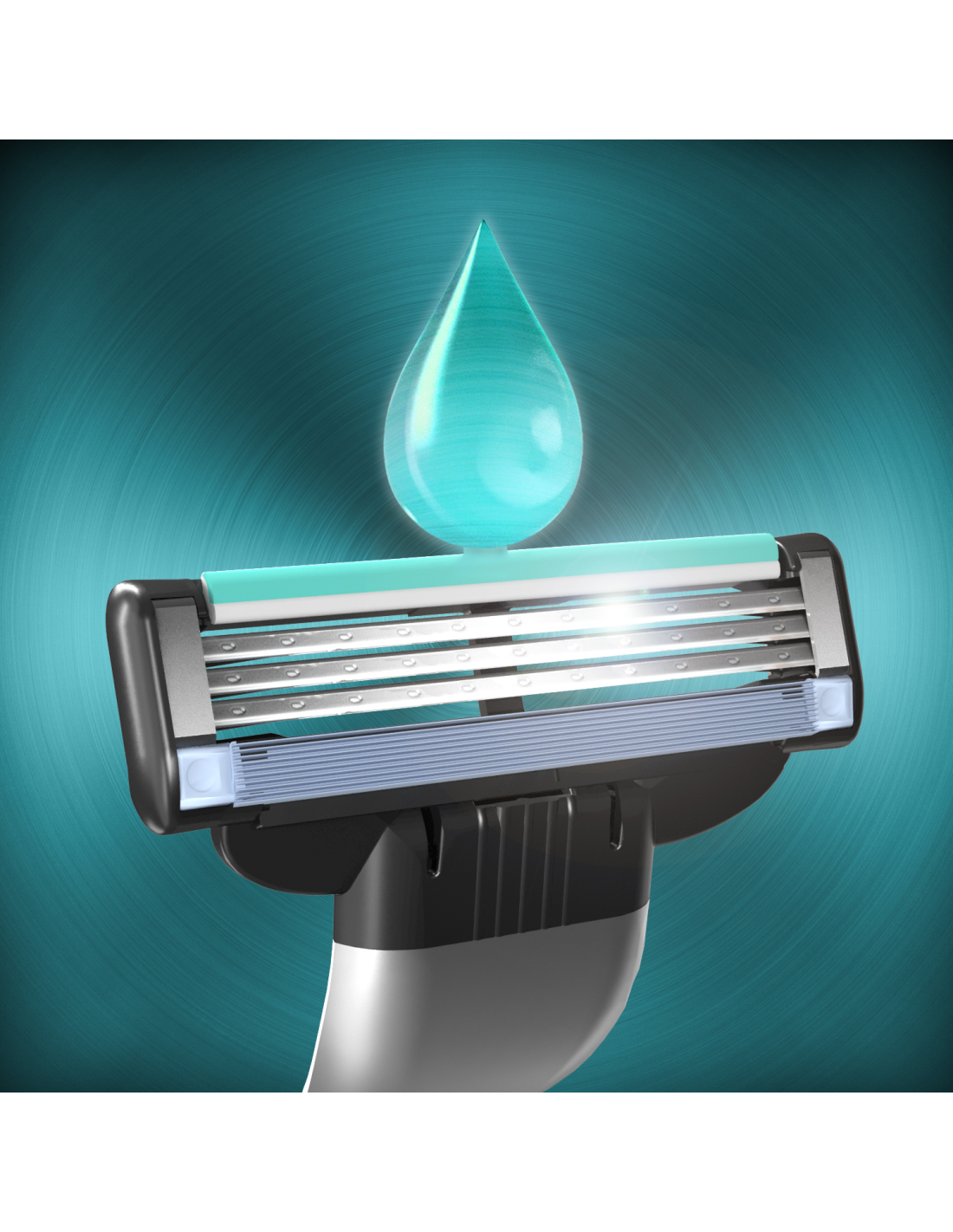 - Vähem raseerimisaegset nahaärritust: 3 teraga raseerijal on tõhustatud niisutusriba sujuvamaks libisemiseks*. (* vs. eelmine Mach3)