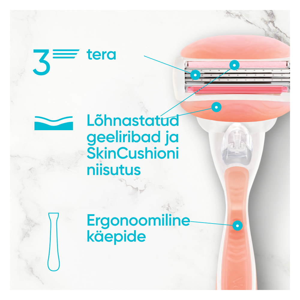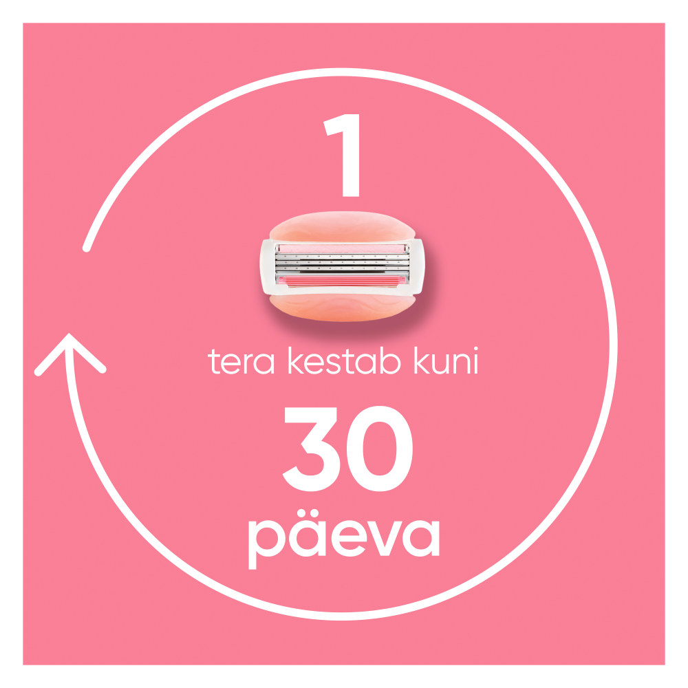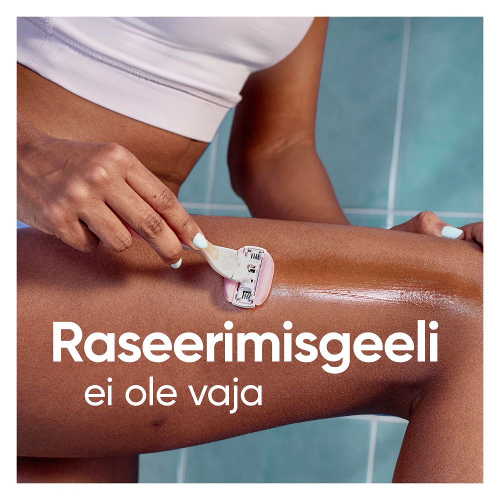 - VARUTERAD: 4 ComfortGlide Breeze naiste raseerija varuterad, igaühes 3 sisseehitatud tera siledaks, nahalähedaseks raseerimiseks, mis kestab