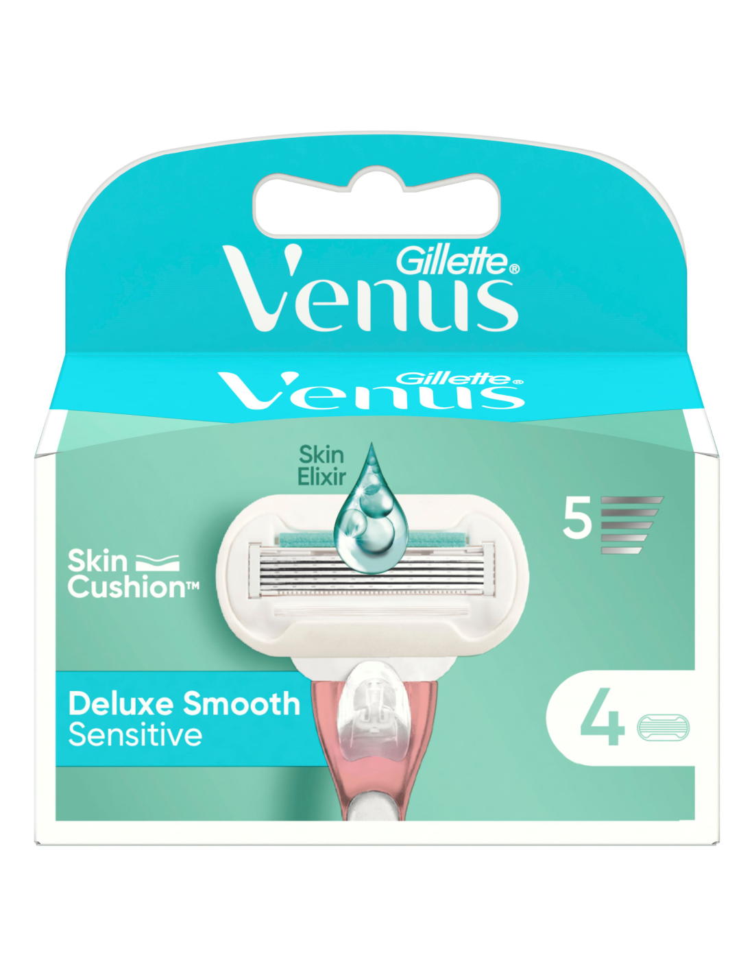 Gillette Venus naiste raseerimisterad on valmistatud naise keha silmas pidades. Gillette Venus Deluxe Smooth Sensitive naiste raseerija terad tagavad sinu tundlikule nahale ideaalse kaitse. Raseerija varuterad on varustatud 5 teraga, mis tagavad kauakestva raseerimise SkinElixir* määrderibaga, mis doseerib naha kaitseks ideaalse koguse kaitseainet, mida tunnete. Kõik Gillette Venuse varuterad sobivad kõigi Gillette Venuse raseerija käepidemetega (v.a Gillette Simply Venus ja Gillette Venus Pubic Hair and skin).
