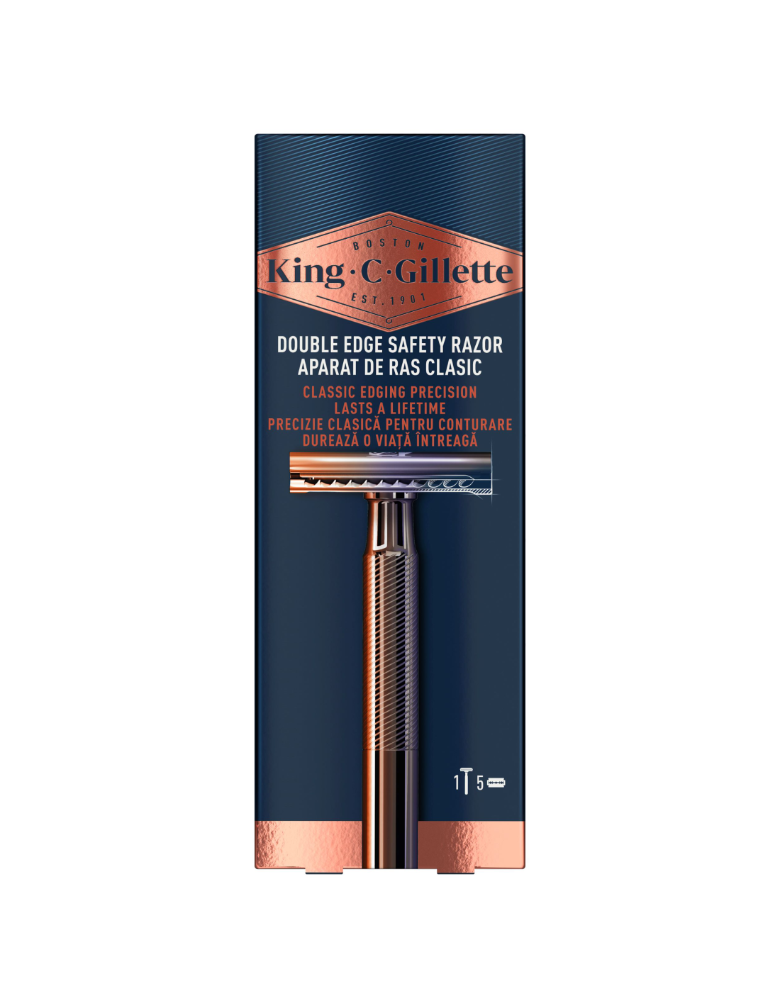 Rohkem kui saja aasta jooksul täiustunud asjatundlikkuse ja uuenduslikkuse tulemusel on sündinud ainus sari, mis kannab meie ettevõtte asutaja King C. Gillette’i nime. Raseerija omapärane disain on inspiratsiooni saanud Gillette’ile omasest üliheast lõiketäpsusest. Plaatinakattega kaheteraline tera töötab ülitäpselt ja sobib seega ideaalselt põskhabeme ning selgete habemepiiride lõikamiseks. Gillette’i suletud kammidega disain tagab hea juhitavuse ning kroomitud kvaliteetkäepide annab vastupidavuse.