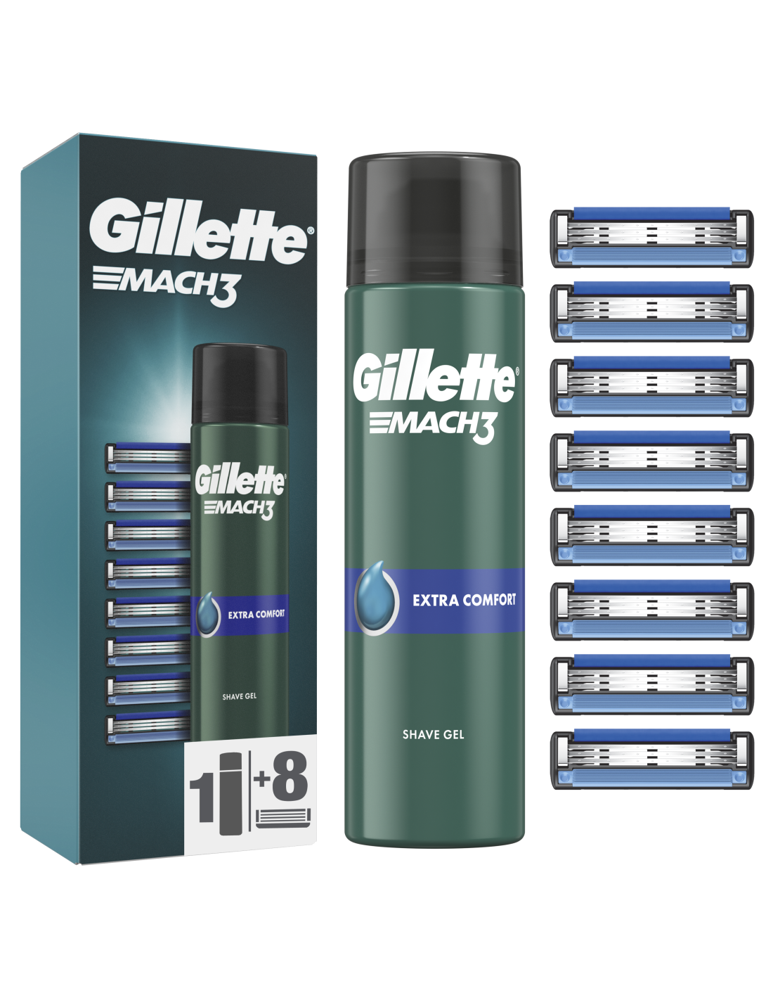 Gillette Mach3 Raseerija Varuterad, 8 tk + Mach3 geel 200ml