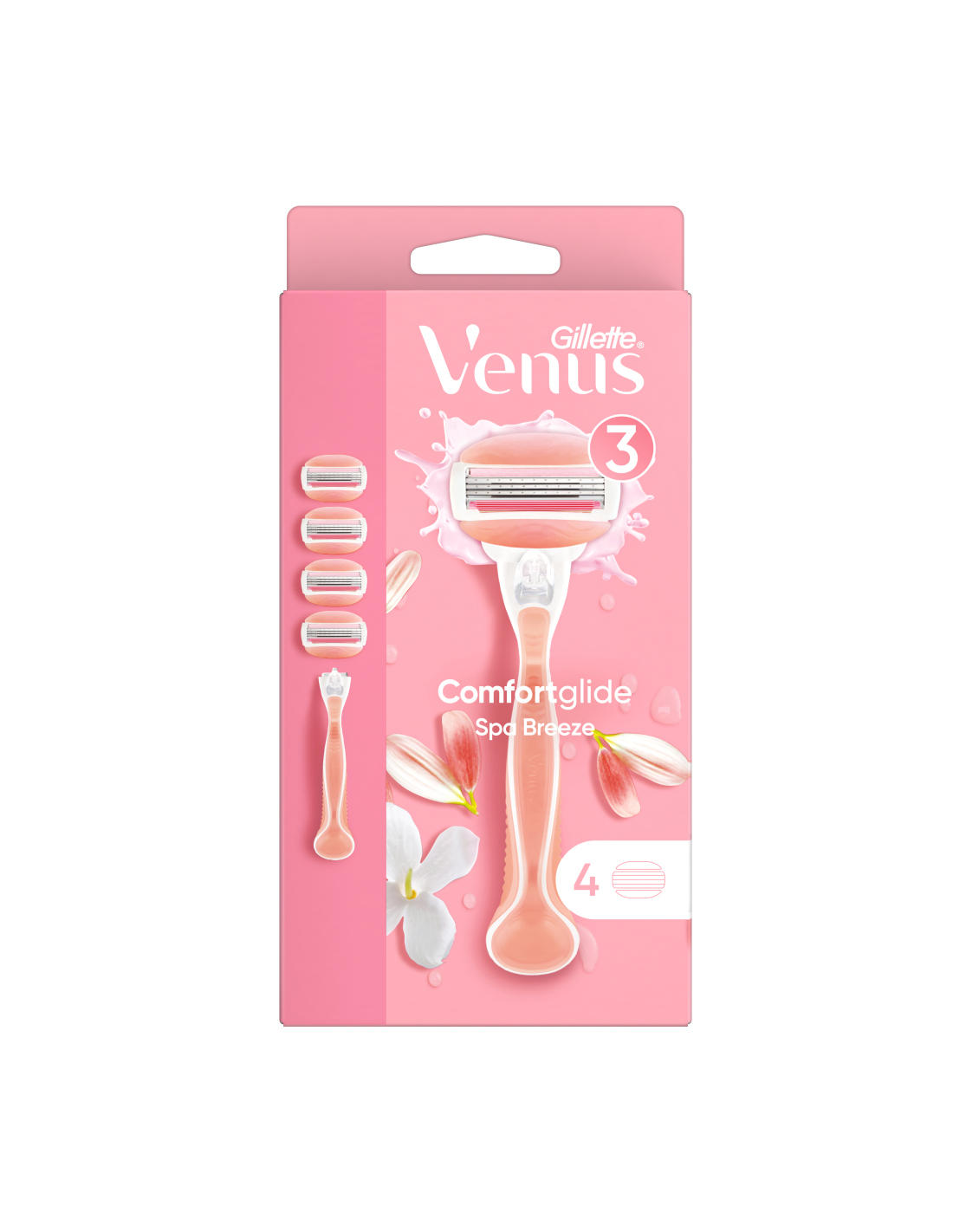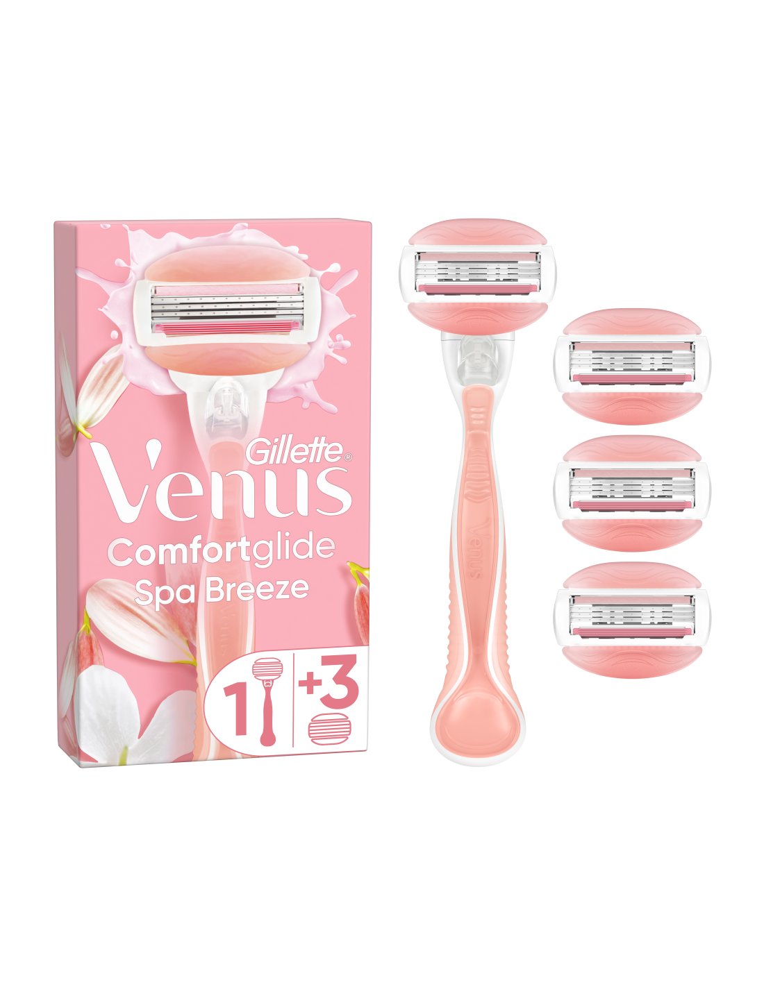 Gillette Venus naiste raseerimisterad on valmistatud naise keha silmas pidades. Gillette Venus ComfortGlide Spa Breeze naiste raseerijatel on sujuva ja nahalähedase raseerimise jaoks 3 tera. Raseerija varuteradel on libisemise ja mugavuse tagamiseks geeliribad, mis vabastavad valge tee aroomiga kehavõid. Pööratava disainiga, mis kohandub teie keha kontuuridega. Kõik Venuse varuterad sobivad kõigi Venuse raseerija käepidemetega (v.a Gillette Simply Venus ja Gillette Venus Pubic Hair and skin).