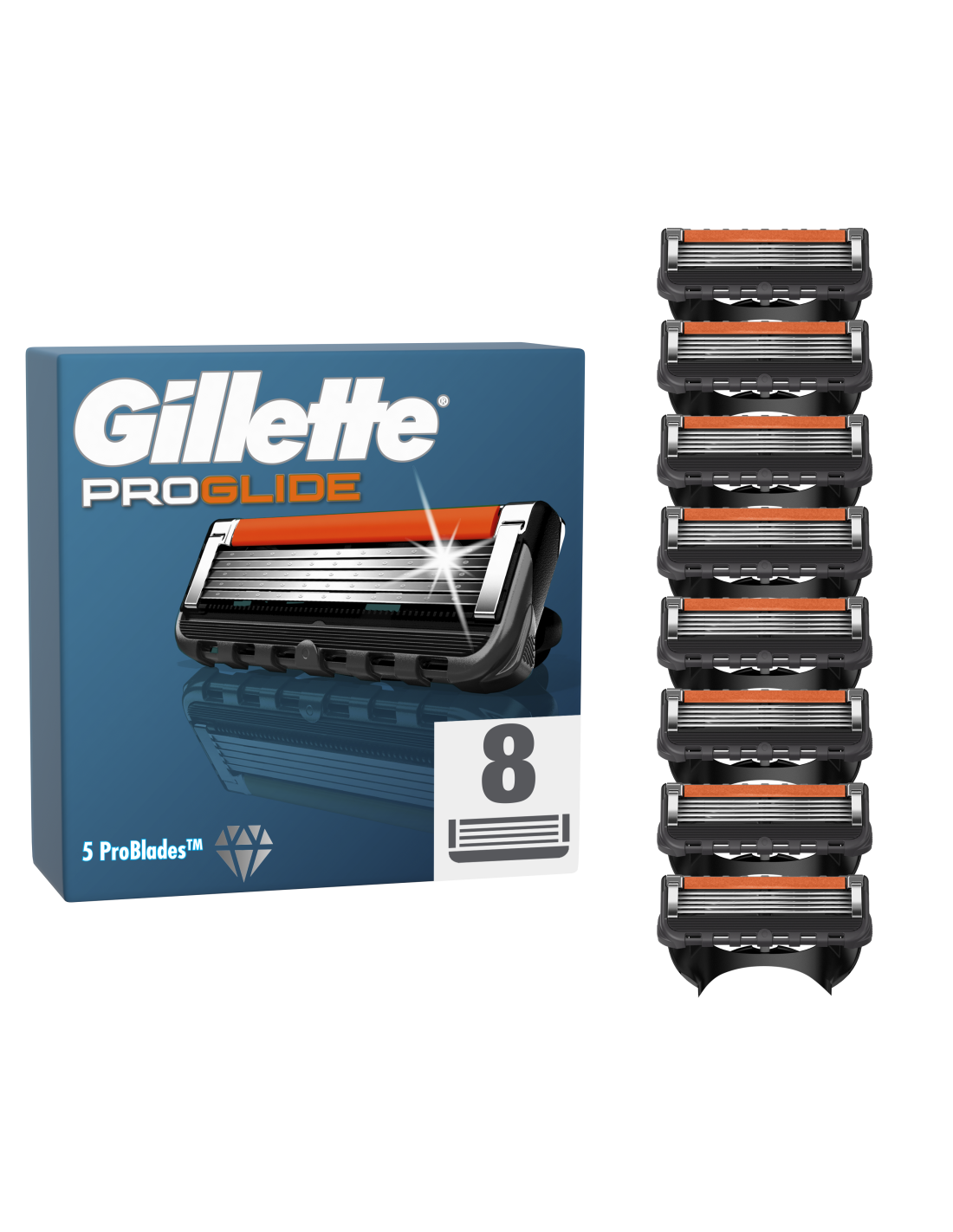 Meeste raseerija Gillette ProGlide  tagab Gillette’i tuntud raseerimistäpsuse mugavalt ja stiilselt. Sellel meestele mõeldud raseerijal on suurem niisutusriba (vs. Fusion5) mugavuseks ja libisemiseks. Teradele on lisatud stabiilsust, et tagada nende optimaalne vahekaugus, ja kõrgem kaitsevõre naha paremaks kaitseks.. Tagaküljel olev täppistrimmer sobib ideaalselt habeme/vuntside kujundamiseks eriti just raskesti ligipääsetavates kohtades. Üliteravad hõõrdumisvastased raseerimisterad tagavad sujuva raseerimise ja sobivad kõikidele Gillette’i 5 teraga raseerijate käepidemetele (v.a GilletteLabs). ProGlide’i vahetustera peab vastu kuni 1 kuu.