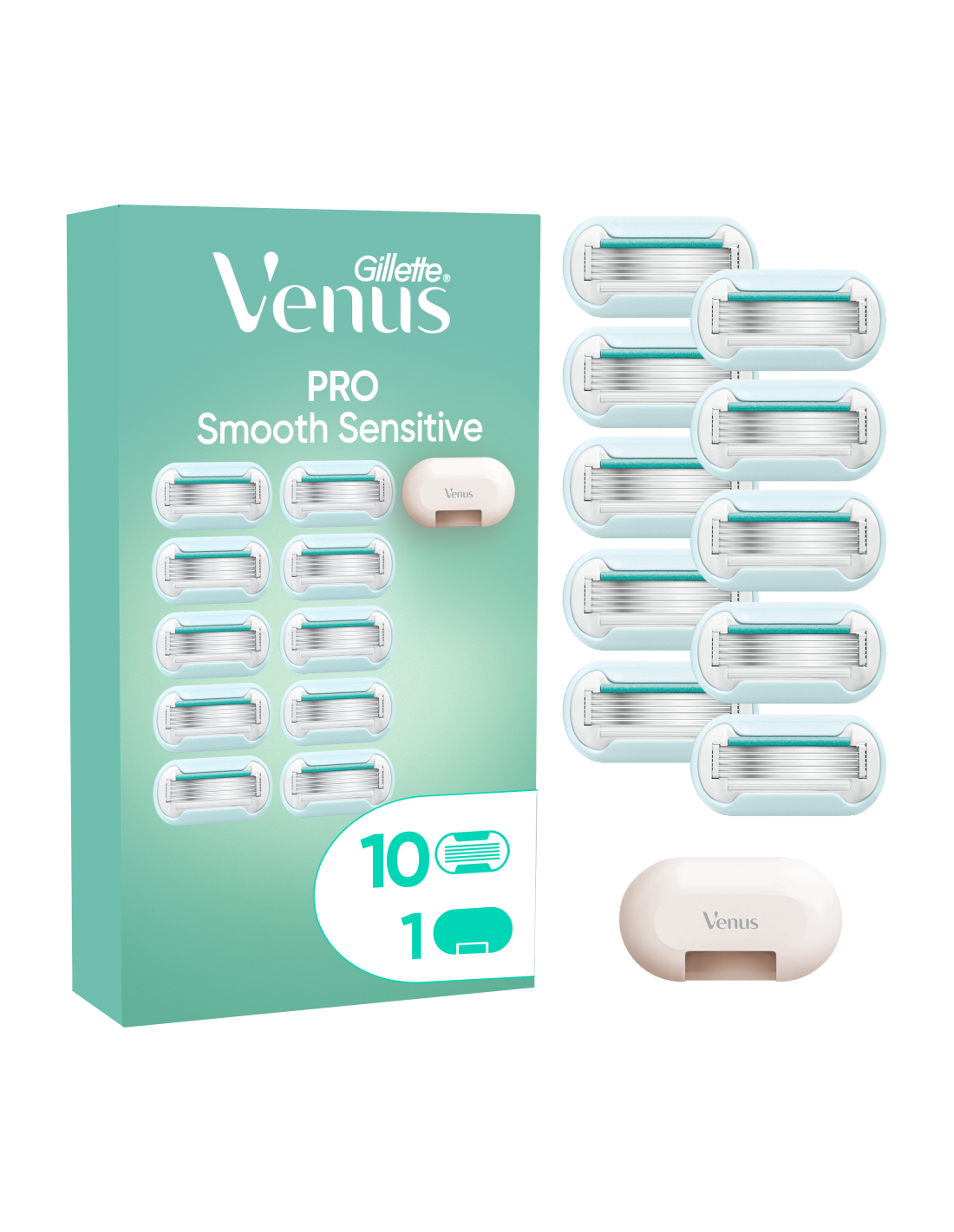 Kas soovid anda oma tundlikule nahale hellitava sileduse, mida see väärib? Tutvu Gillette Venus Pro Smooth Sensitive’i naiste raseerimisteradega. Raseerimisterad on valmistatud spetsiaalselt ka kõige tundlikuma nahaga naistele ja tagavad kauakestva sileda raseerimistulemuse kuni 30 päevaks. Meie SkinCushioni määrderiba (ja veidikese aaloega SkinElixir) aitab kaitsta nahka ja vähendab raseerimisjärgset ärritust kuni 0%-ni. Kas soovid paremat kontrolli? Meil on teie jaoks kõik olemas: meie vastupidavale ja ergonoomilisele metallist käepidemele on suurema täpsuse tagamiseks lisatud raskust. Korduskasutatav käepide ühildub ka kõigi Venuse raseerimisterade täitekassettidega. Kaasasolev dušihoidik aitab terad hoida raseerimiskordade vahel puhta ja kuivana. Raseerimiskogemus, mis võtab arvesse sinu nahka. Hangi Venus Pro Smooth Sensitive. Kas otsid veelgi rohkem viise, kuidas oma naha eest hoolitseda nii, nagu soovid? Olenemata sellest, mida soovid trimmida, raseerida, vormida või stiliseerida, on Gillette Venuse tooted valmistatud sinu keha ja kehakarvasid silmas pidades. Tutvu tootevalikuga juba täna.
