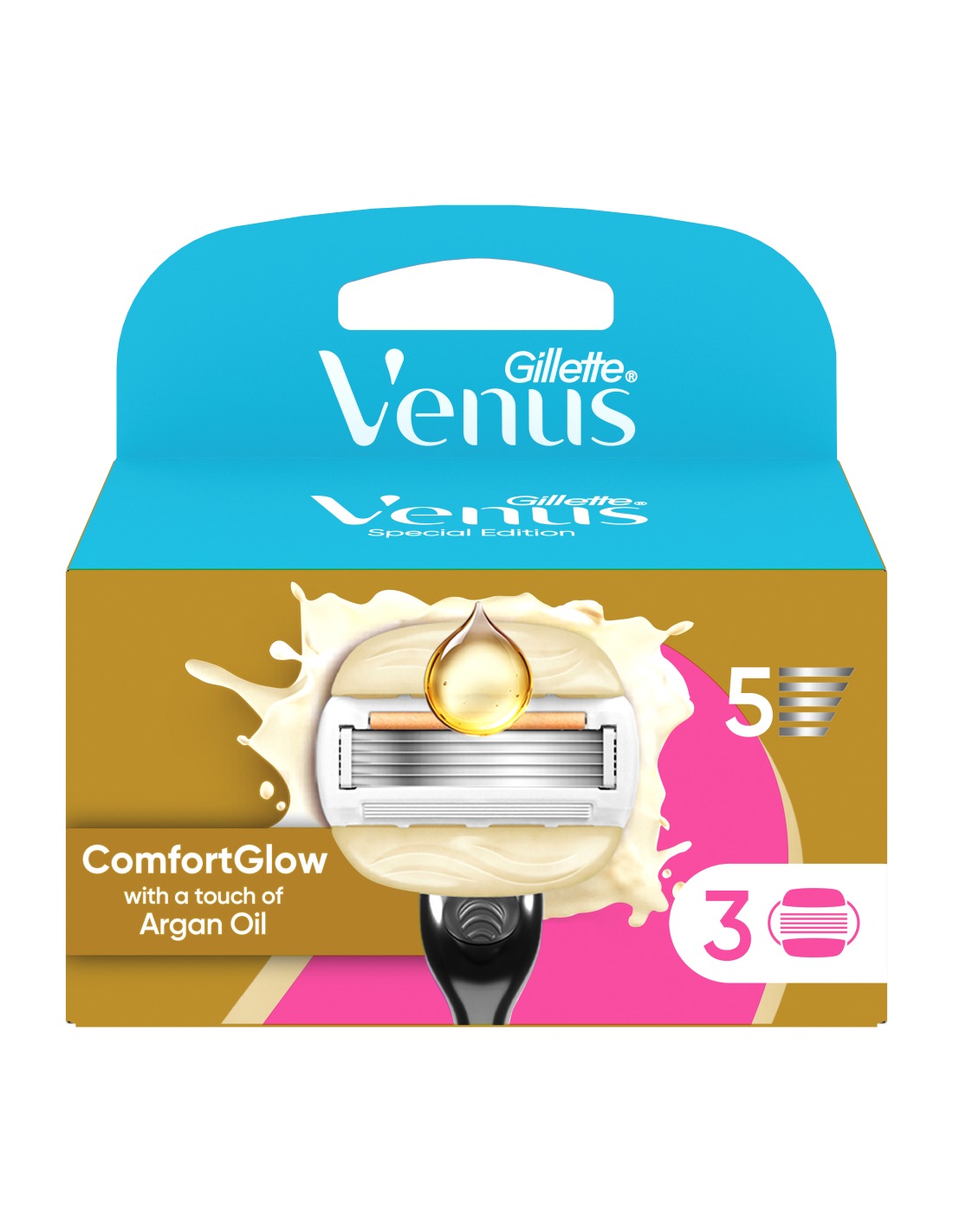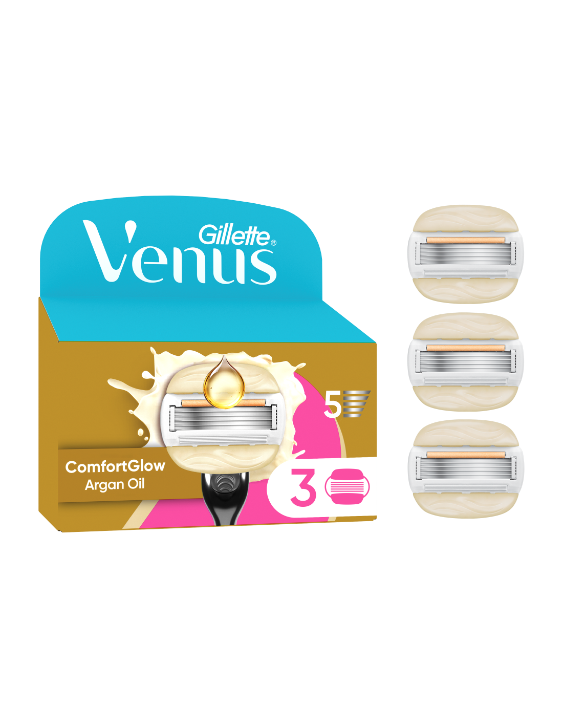 - SILE JA PEHME: Gillette Venus Comfort Glow veidikese Argaaniaõliga Naiste Raseerija muudab naha ühe tõmbega silmnähtavalt siledaks ja pehmeks ning on spetsiaalselt loodud kuivale nahale.