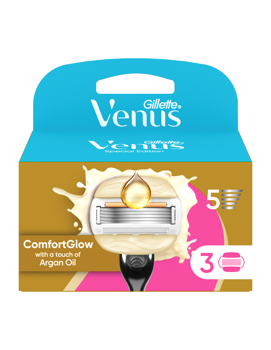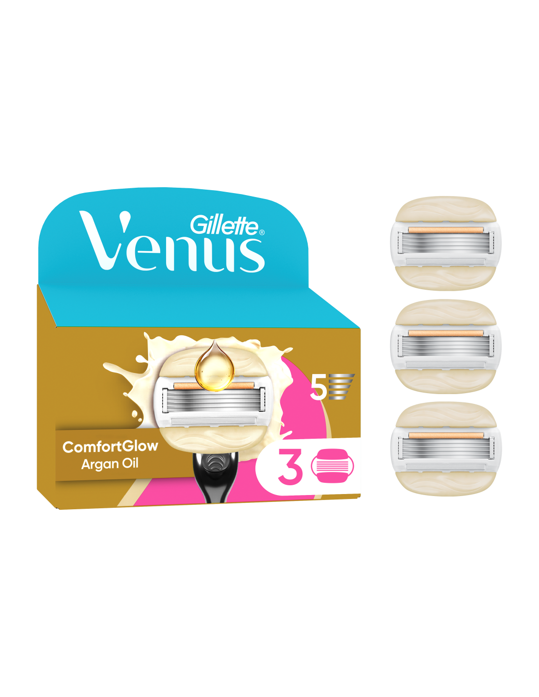 - SILE JA PEHME: Gillette Venus Comfort Glow veidikese Argaaniaõliga Naiste Raseerija muudab naha ühe tõmbega silmnähtavalt siledaks ja pehmeks ning on spetsiaalselt loodud kuivale nahale.