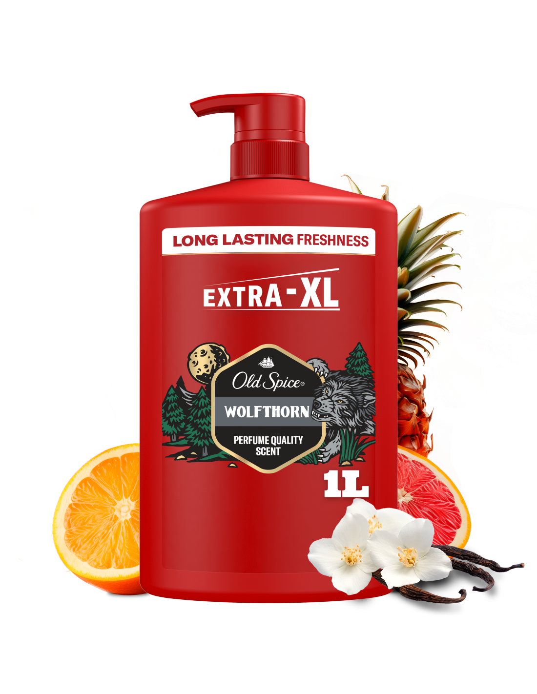 Nautige unustamatut kauakestvat värskust ja lõhnavat enesekindlust koos Old Spice Wolfthorni meeste dušigeeli & šampooniga. Oma sügavpuhastava koostise ja parfüümikvaliteediga lõhnadega eemaldab see mustuse ja lõhna, jättes su värskeks ja puhtaks. Selle universaalne kolm-ühes koostis toimib juustel, näol ja kehal, jättes naha vastupandamatult siledaks, nii et saate keskenduda tähtsamatele tegevustele, nagu tehingute sõlmimine või delfiinide rääkima õpetamine. Proovige Old Spice Wolfthorni parfüümikvaliteediga lõhna ja laske oma metsik pool valla! See metsikute tsitrusviljade, troopiliste puuviljade, mahlase mandariini ja tilgakese vanilje värske aroom tugevdab taltsutamatut olemust. Olge valmis ulguma.