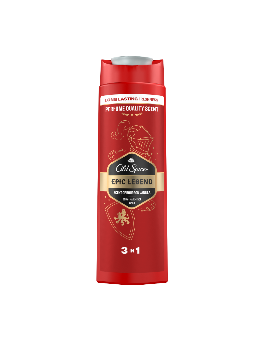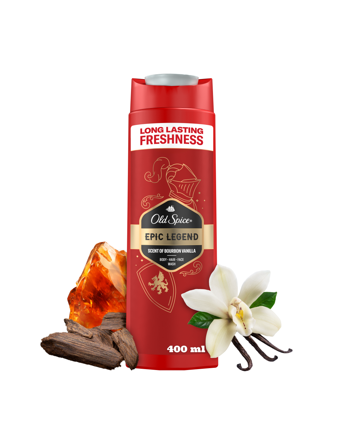 Naudi unustamatut kauakestvat värskust ja heast lõhnast tulevat enesekindlust tänu meestele mõeldud dušigeelile ja šampoonile Old Spice Epic. Sügavpuhastava koostise ja parfüümikvaliteediga aroomiga eemaldab see mustuse ja ebameeldiva lõhna, jättes sind värskeks ja puhtaks. Universaalne kolm-ühes koostis toimib juustel, näol ja kehal, jättes naha vastupandamatult siledaks, nii et saad keskenduda tähtsamatele tegevustele, nagu kasulike kokkulepete sõlmimine või delfiinide rääkima õpetamine. Bourboni vanilje, kirsitubaka, suitsutatud tammepuidu ja sooja ambra lõhn muudab sind tõeliseks värskuse rüütliks.