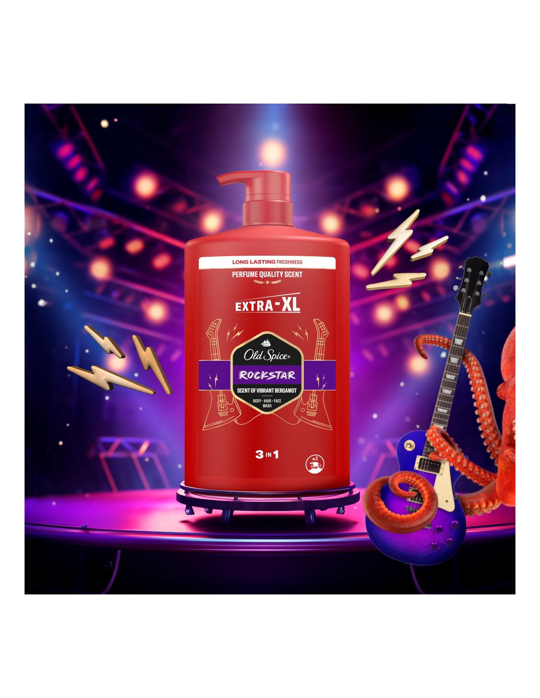 Naudi unustamatut kauakestvat värskust ja heast lõhnast tulevat enesekindlust tänu meestele mõeldud dušigeelile ja šampoonile Old Spice Rockstar. Sügavpuhastava koostise ja parfüümikvaliteediga aroomiga eemaldab see mustuse ja ebameeldiva lõhna, jättes sind värskeks ja puhtaks. Universaalne kolm-ühes koostis toimib juustel, näol ja kehal, jättes naha vastupandamatult siledaks, nii et saad keskenduda tähtsamatele tegevustele, nagu kasulike kokkulepete sõlmimine või delfiinide rääkima õpetamine. Särtsaka bergamoti ja karge õuna tsitruselõhn koos puidunootidega teevad sinust värskusemaailma rokkstaari.
