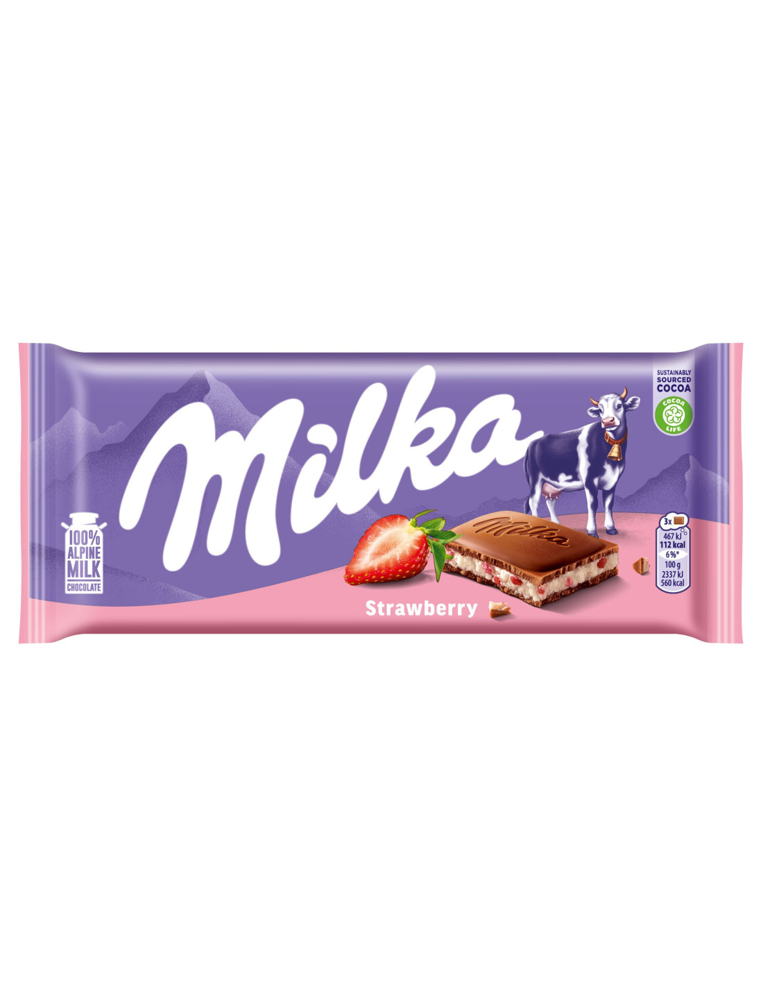 Suhkur, palmiõli, vadakupulber (PIIMAST), kakaovõi, kakaomass, lõssipulber (PIIMAST), PIIMARASV, emulgaator(SOJALETSITIINID),dekstroos, lõhna-jamaitseained,SARAPUUPÄHKLIMASS, maasikapulber(0,2%),maltodekstriin, hape (sidrunhape). VÕIB SISALDADA MUID PÄHKLEID JA NISU.