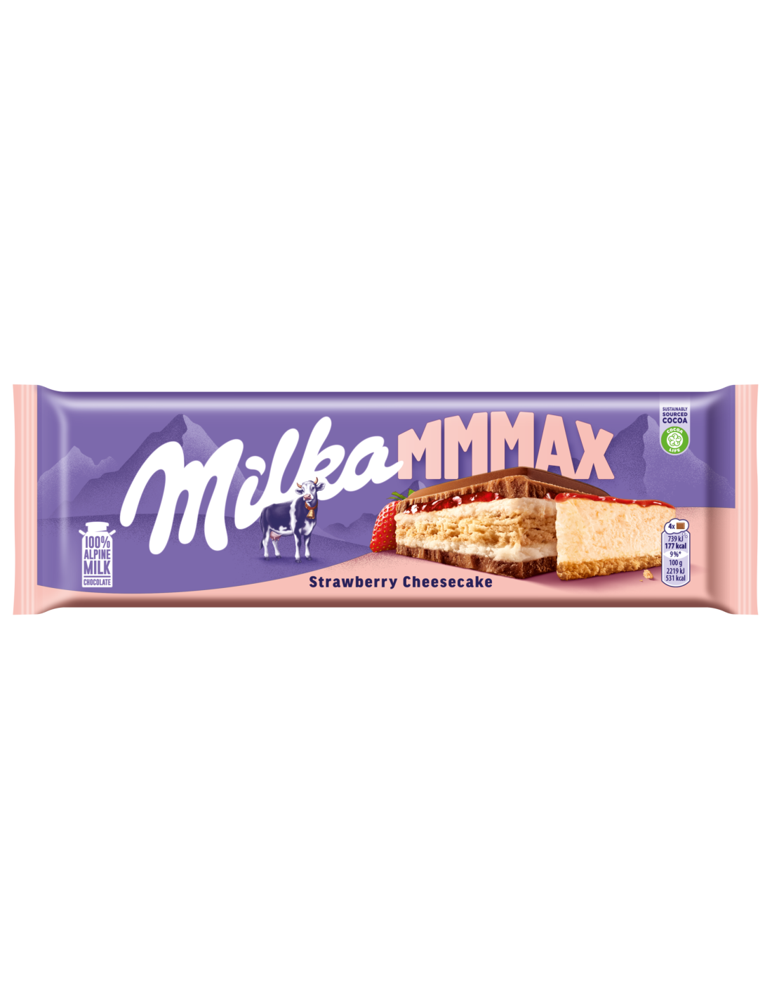 Suhkur, palmiõli, NISUjahu, vadakupulber (PIIMAST), kakaovõi, LÕSSIpulber, glükoosisiirup, kakaomass, PIIMArasv, maasikapüree (1,5%), KREEMJUUSTUpulber (1%), niiskusesäilitaja (glütserool), emulgaator (SOJAletsitiinid), sidrunimahla kontsentraat, JOGURTIpulber, SARAPUUPÄHKLIpasta, mustsõstramahla kontsentraat, lõhna- ja maitseained, sool, kergitusained (naatriumvesinikkarbonaat, ammooniumvesinikkarbonaat). Piimašokolaad sisaldab vähemalt 30% kakaokuivainet. Piimakuivainet vähemalt 18%. Võib sisaldada muid pähkleid ja muna.