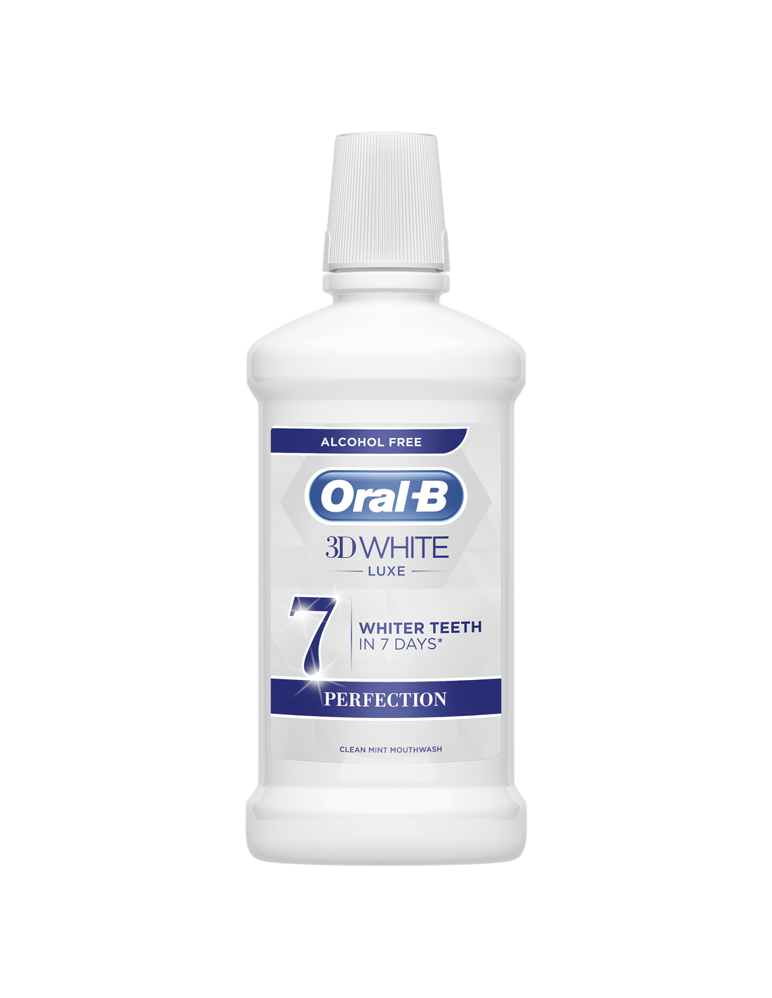 • Oral-B 3D White Luxe Perfectioni suuloputusvesi muudab 7-päevase harjamisel kasutamisega hambad valgemaks. See eemaldab pindmised plekid ja jätab suu värskeks ilma alkoholi tekitatud kõrvetustundeta.