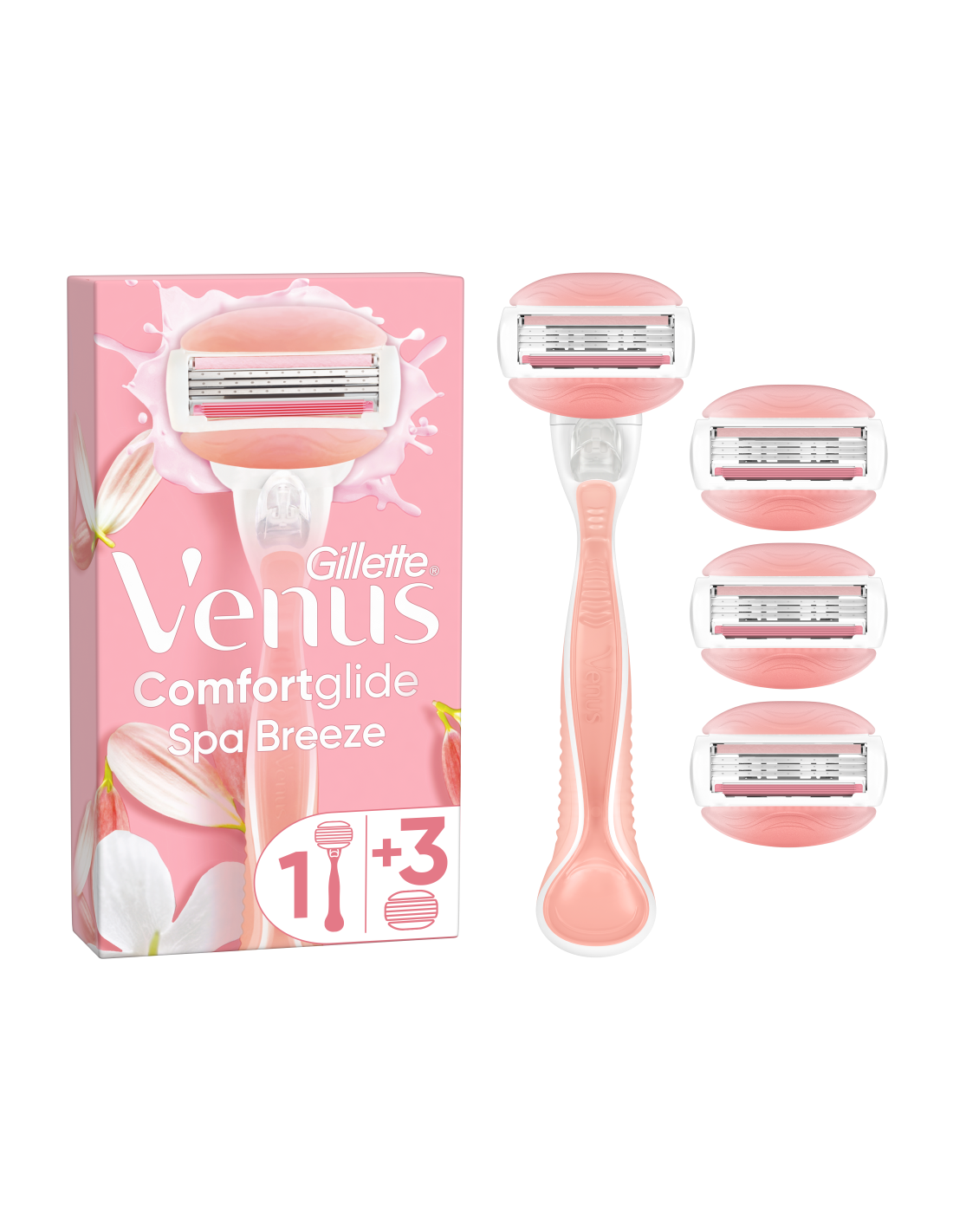Gillette Venus naiste raseerimisterad on valmistatud naise keha silmas pidades. Gillette Venus ComfortGlide Spa Breeze naiste raseerijatel on sujuva ja nahalähedase raseerimise jaoks 3 tera. Raseerija varuteradel on libisemise ja mugavuse tagamiseks geeliribad, mis vabastavad valge tee aroomiga kehavõid. Pööratava disainiga, mis kohandub teie keha kontuuridega. Kõik Venuse varuterad sobivad kõigi Venuse raseerija käepidemetega (v.a Gillette Simply Venus ja Gillette Venus Pubic Hair and skin).