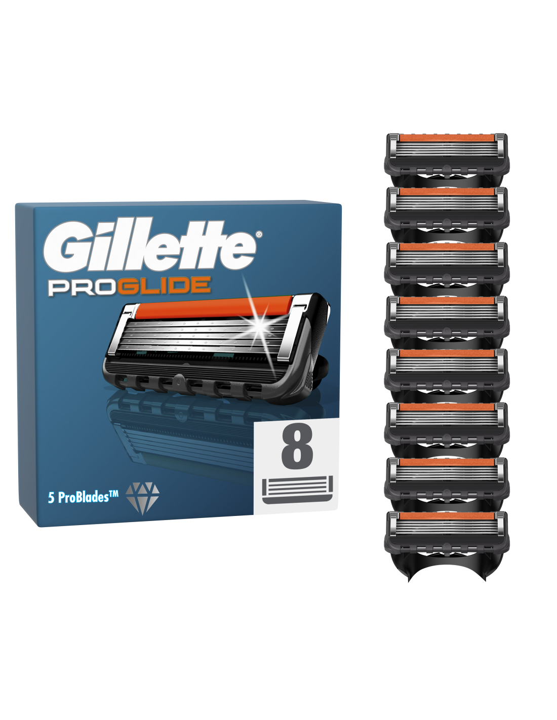 Meeste raseerija Gillette ProGlide  tagab Gillette’i tuntud raseerimistäpsuse mugavalt ja stiilselt. Sellel meestele mõeldud raseerijal on suurem niisutusriba (vs. Fusion5) mugavuseks ja libisemiseks. Teradele on lisatud stabiilsust, et tagada nende optimaalne vahekaugus, ja kõrgem kaitsevõre naha paremaks kaitseks.. Tagaküljel olev täppistrimmer sobib ideaalselt habeme/vuntside kujundamiseks eriti just raskesti ligipääsetavates kohtades. Üliteravad hõõrdumisvastased raseerimisterad tagavad sujuva raseerimise ja sobivad kõikidele Gillette’i 5 teraga raseerijate käepidemetele (v.a GilletteLabs). ProGlide’i vahetustera peab vastu kuni 1 kuu.