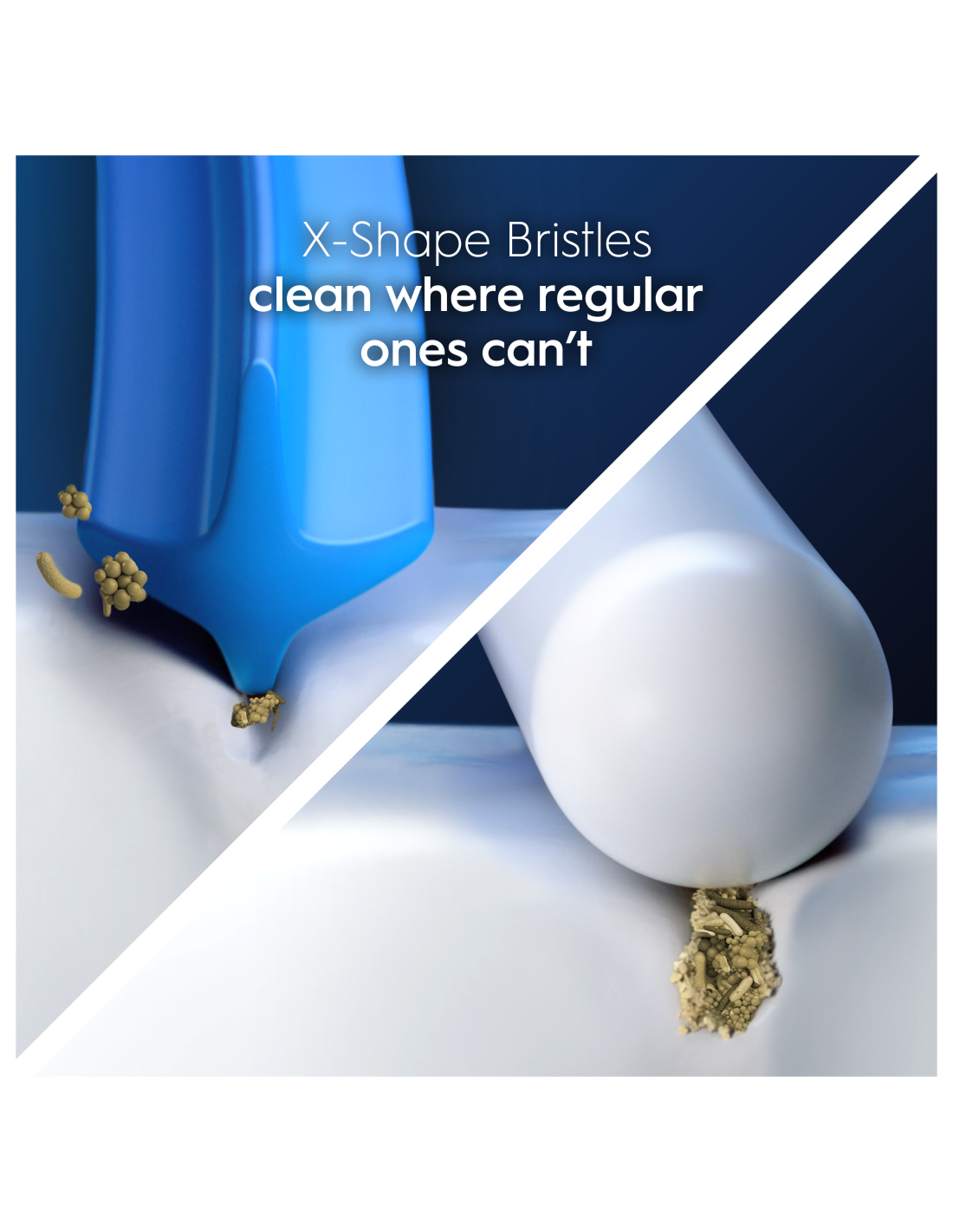 - Ainult originaalsetel Oral-B harjapeadel on X-kujulised harjased, mis puhastavad optimaalse puhastusefektiivsuse saavutamiseks kohti, kuhu tavalised harjaga ei ulatu.