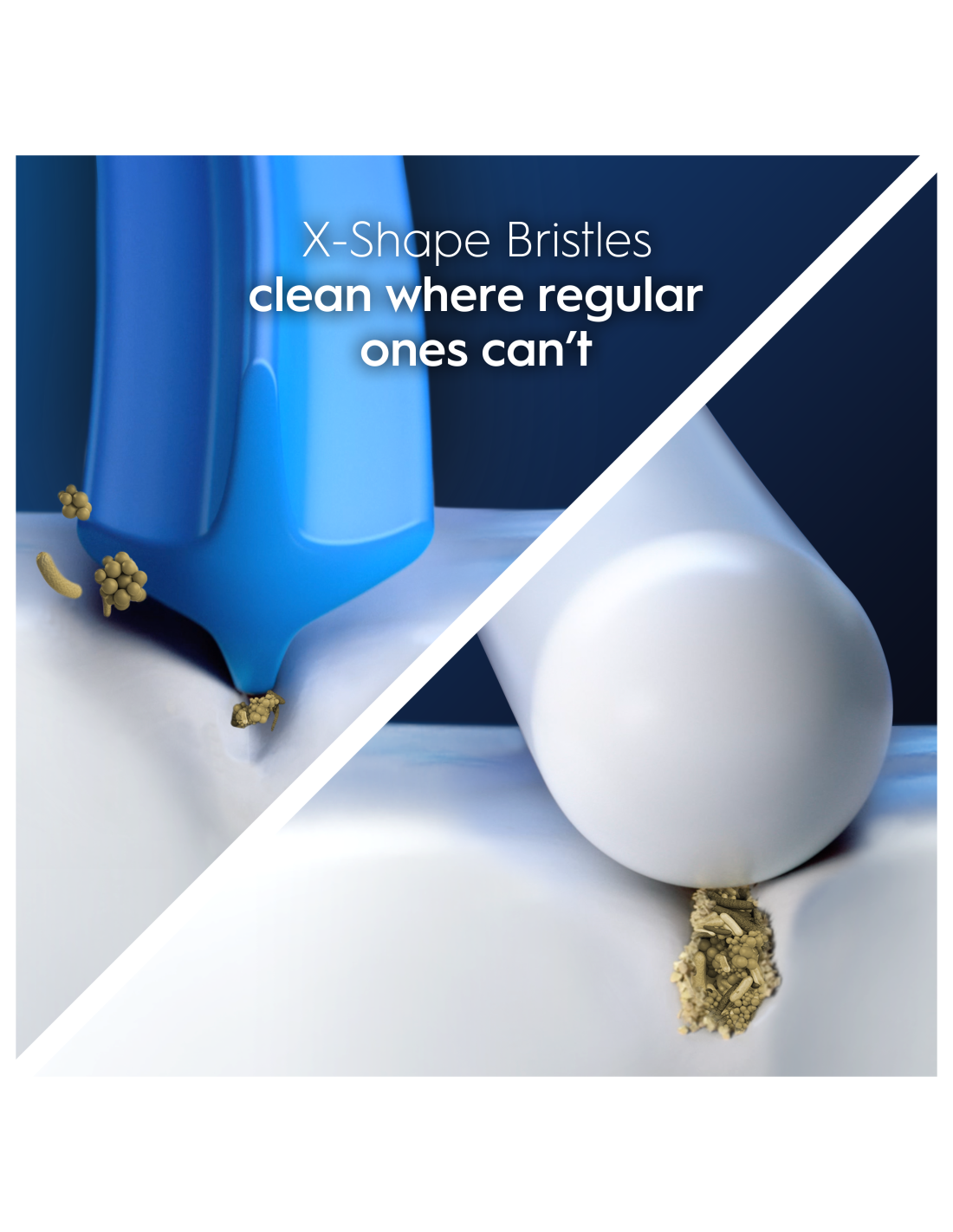 - Ainult originaalsetel Oral-B harjapeadel on X-kujulised harjased, mis puhastavad optimaalse puhastusefektiivsuse saavutamiseks kohti, kuhu tavalised harjaga ei ulatu.