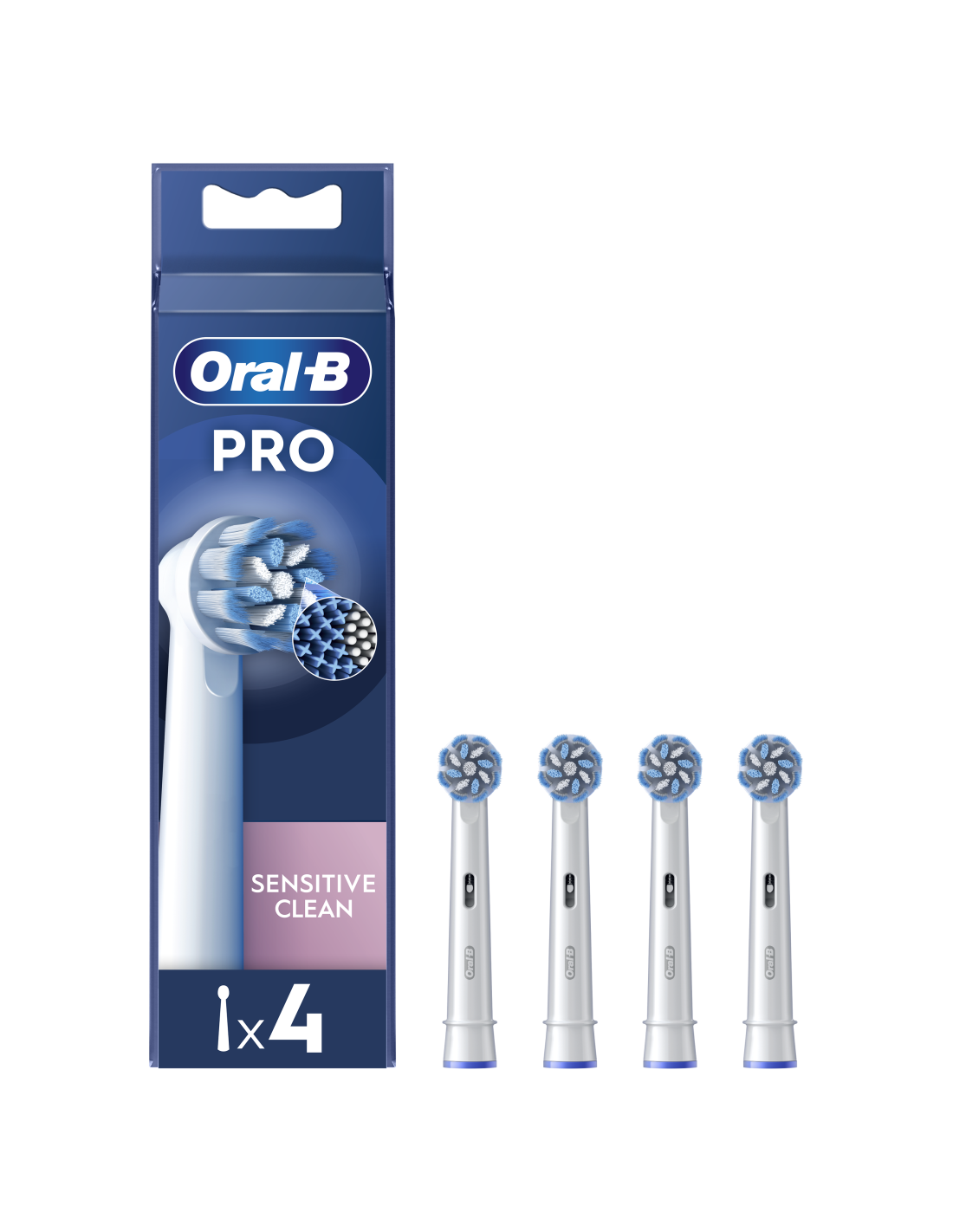 Oral-B Pro Sensitive Clean hambaharjal on eriti pehmed harjased, mis on igemetele õrnad ning on kombineeritud tavapäraste harjastega, mis eemaldavad tõhusalt hambakatu. See eemaldab võrreldes tavalise hambaharjaga kuni 100% rohkem hambakattu ja vähendab 100% võrra igemepõletiku tekkimise võimalust. Oral-B originaalsed harjapead on disainitud uute X-kujuliste harjastega, mis puhastavad kohti, kuhu ümarad harjased ei ulatu. Selle harjapea kasutusindikaator muudab harjased rohelisest kollaseks, näidates, millal vahetada hambaharjapea 100% puhastustõhususe saavutamiseks. Garanteeritud ühilduvus kõigi Oral-B laetavate elektrihambaharjadega, välja arvatud Pulsonic & iO hambaharjad.