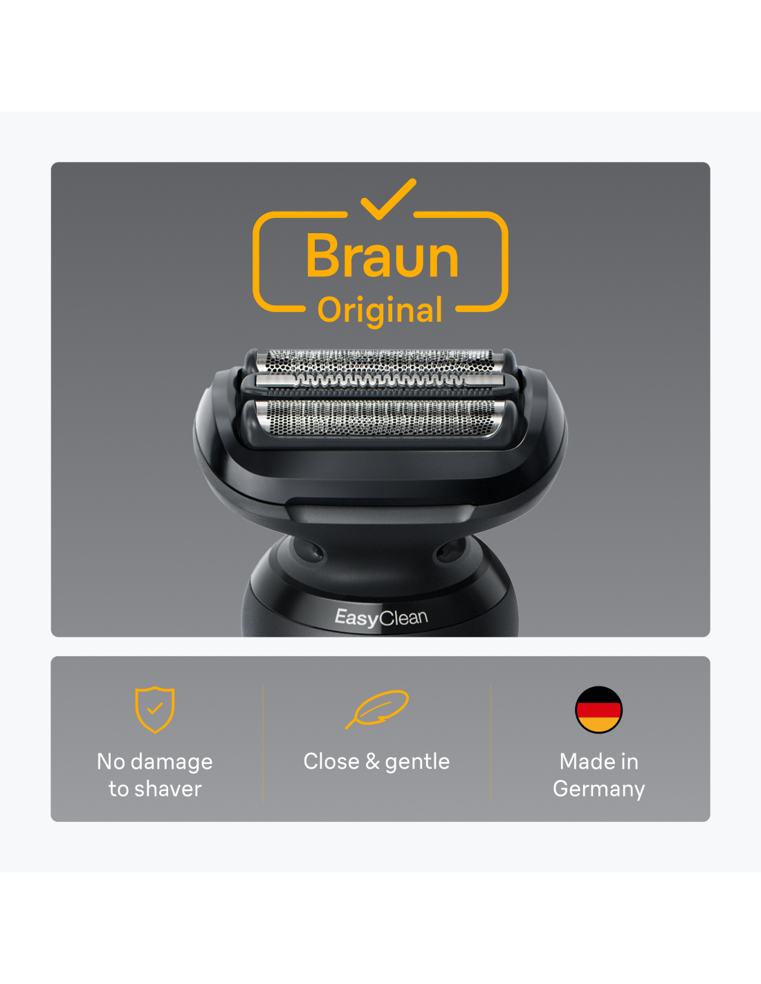 Brauni ORIGINAAL: valmistatud Saksamaal. Kasuta ainult Brauni originaalseid asendusraseerimispeasid, et vältida raseerija kahjustamist.