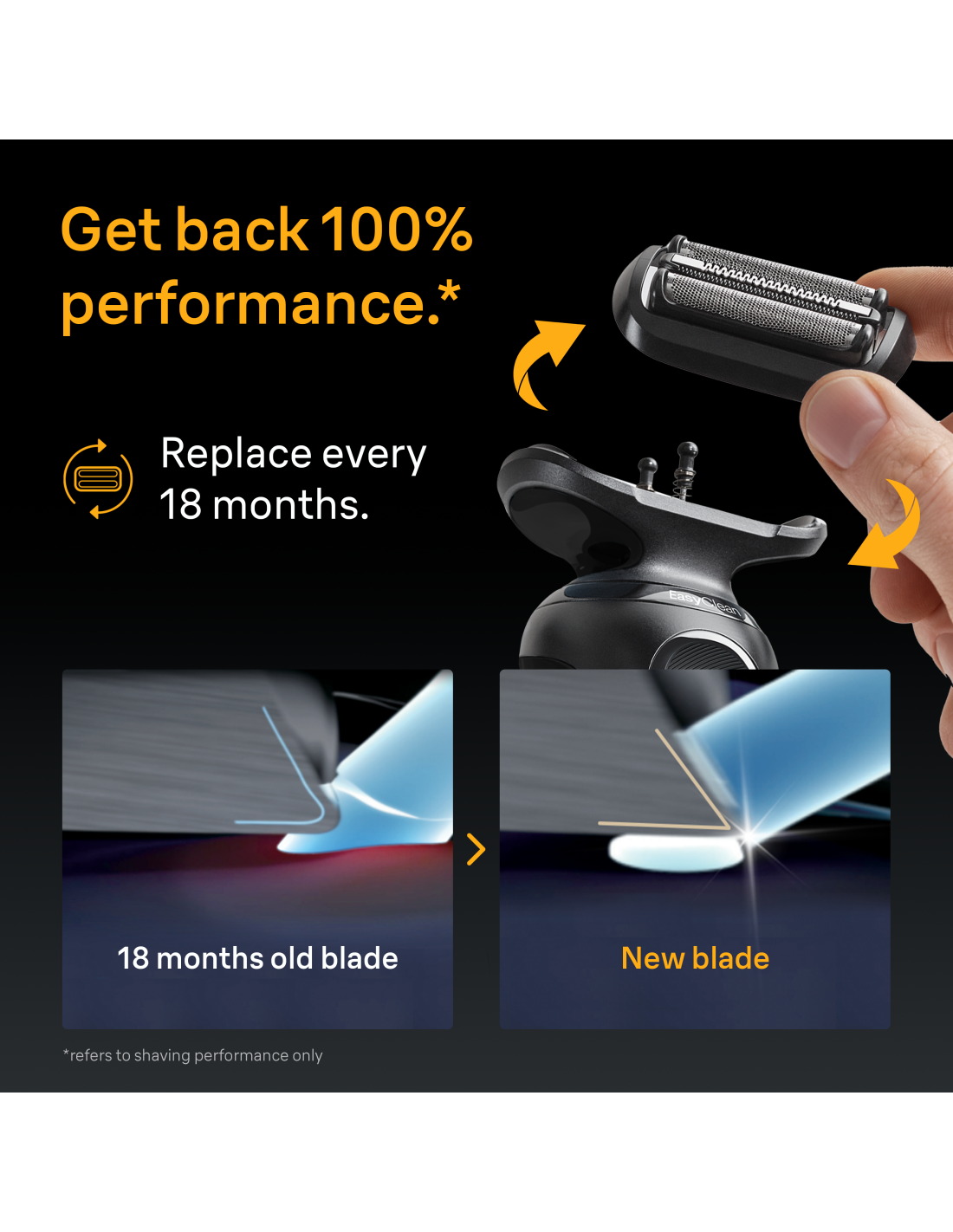 Taasta 100% raseerimisjõudlus: optimaalse raseerimistulemuse jaoks soovitame vahetada elektrilise raseerija raseerimispea iga 18 kuu järel.